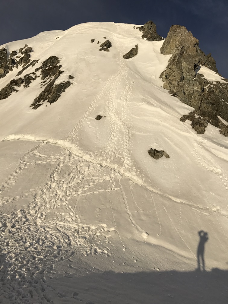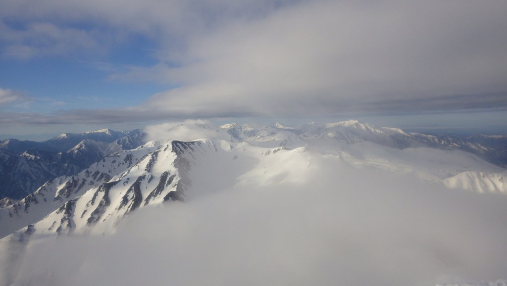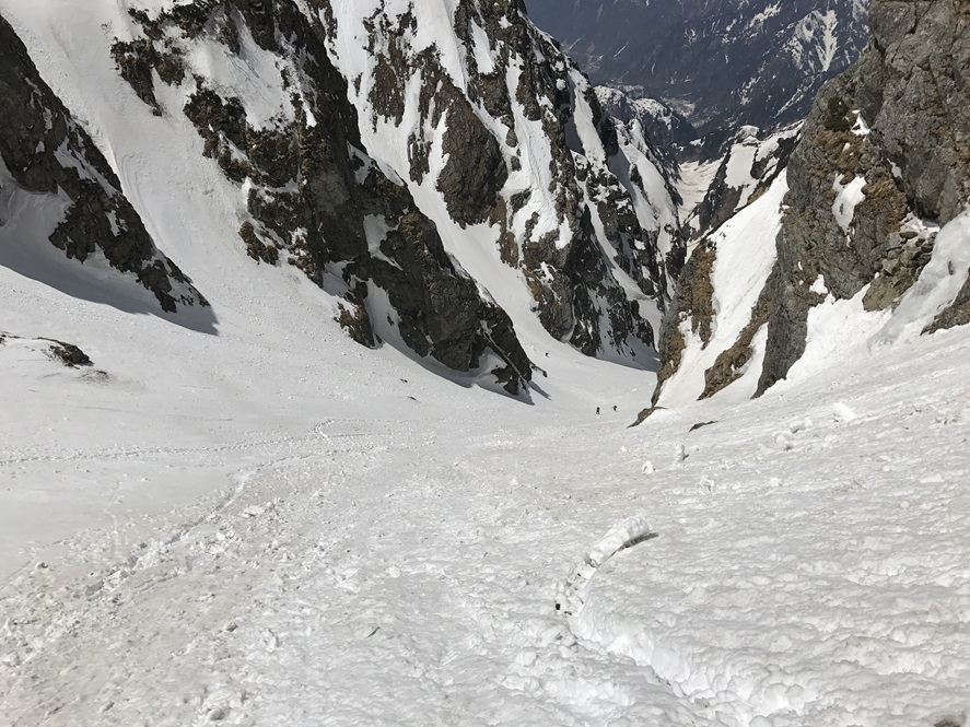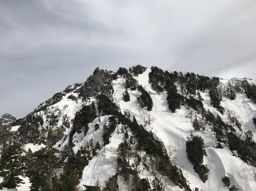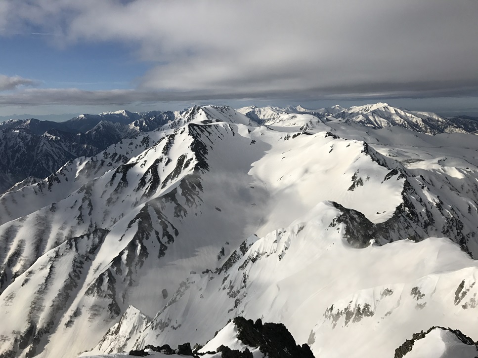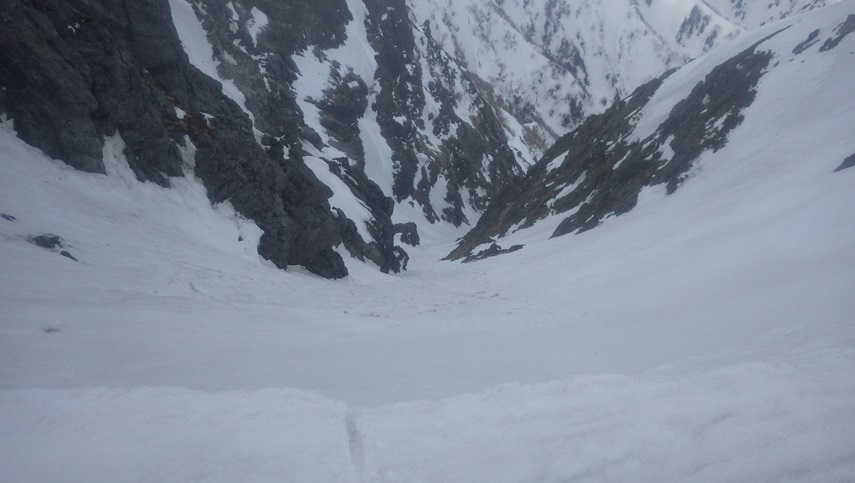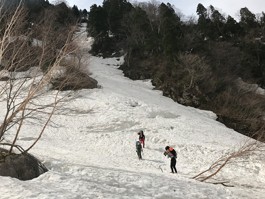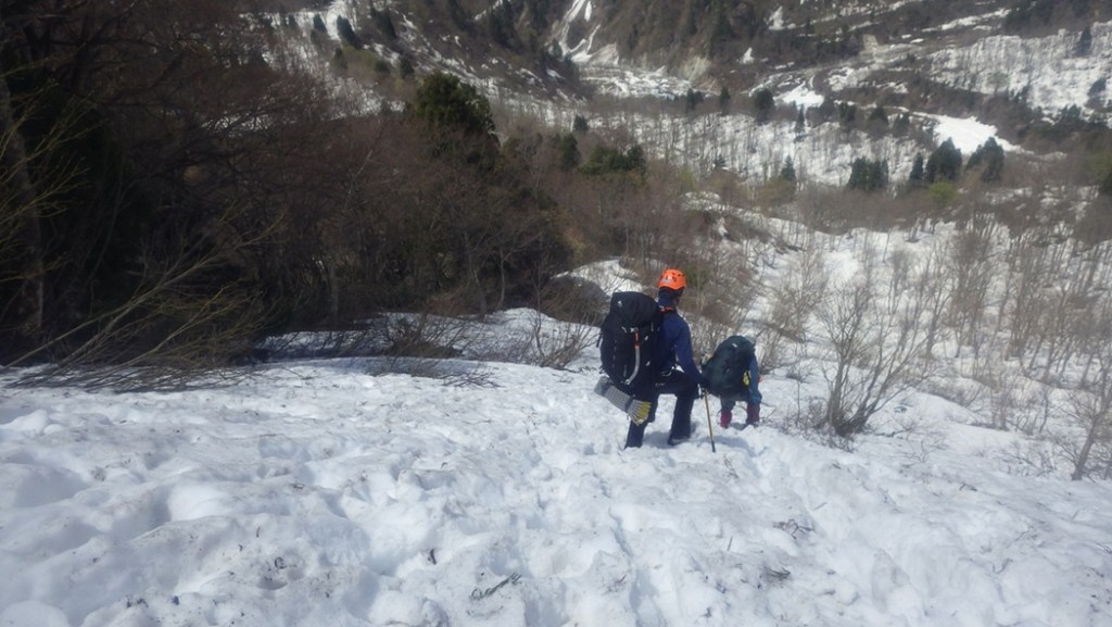 ★コース状況:GWなのでそれなりに人が入っておりトレースはありました。雪質は朝から緩い感じでした。50mロープ×2本を携行して行きましたがロープが必要と迫られるところはなかったように思います。(せっかく持っていったので小窓ノ王脇の雪壁を下る時に懸垂下降で使いましたが・・・)ただしミスすれば大怪我以上というところはしょっちゅう出てくるのでパーティーの技量に合わせてロープを出すことは必要だと思います。早月尾根上部は侮れない下りもありますが、早月小屋より下は雪が付いていると快適に下れます。