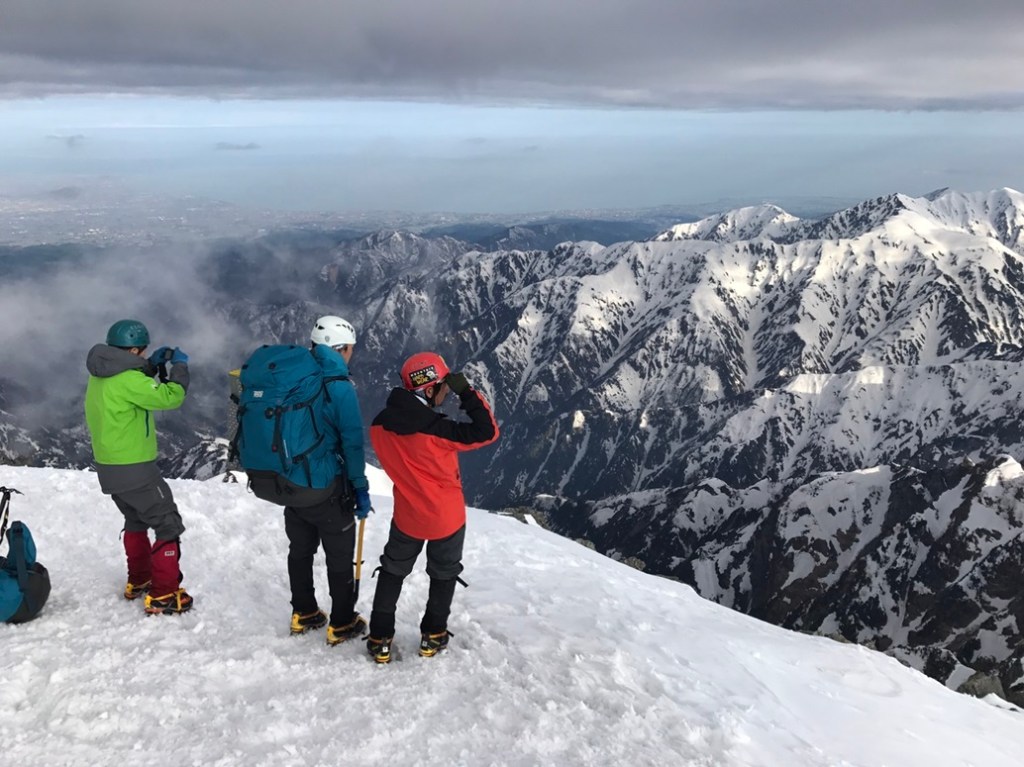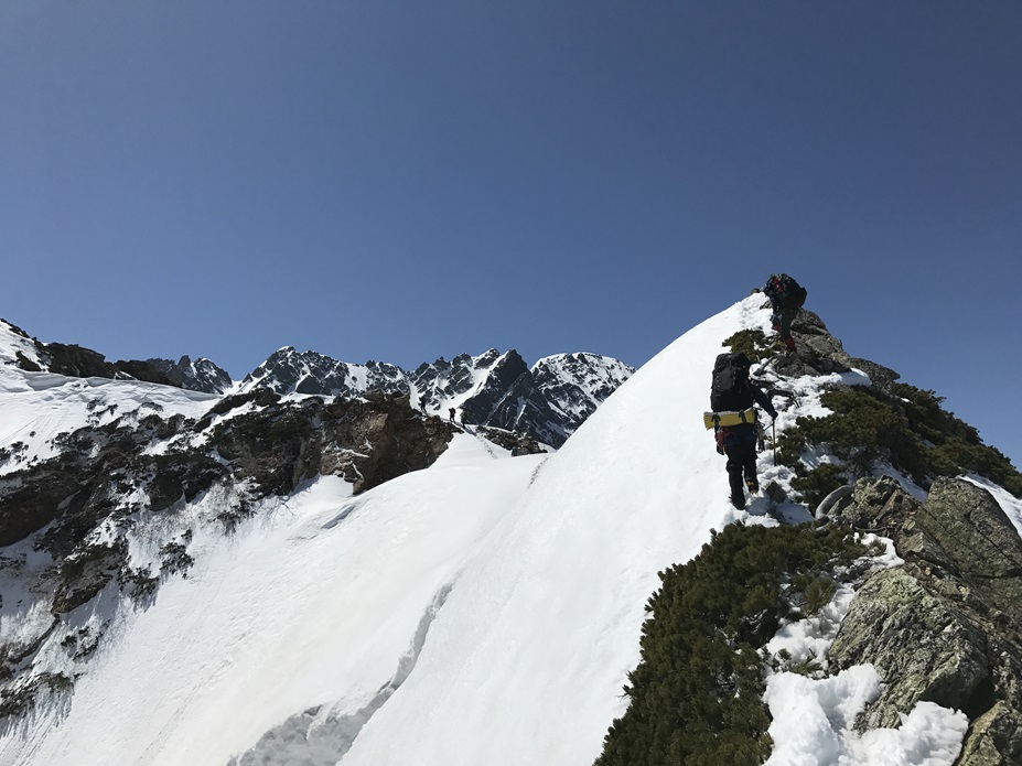 ★感想(山宮):GW会山行で剱岳小窓尾根に行ってきました。3日間とも恵まれた天候で登山することができ良かったです。また剱尾根、チンネ、八ツ峰などの景色も堪能できて今後の登攀意欲が高まりました!!