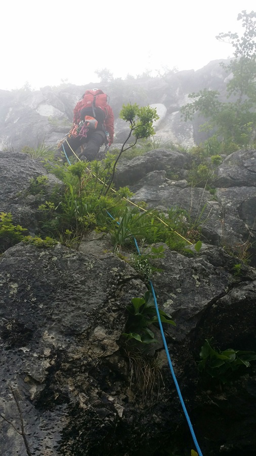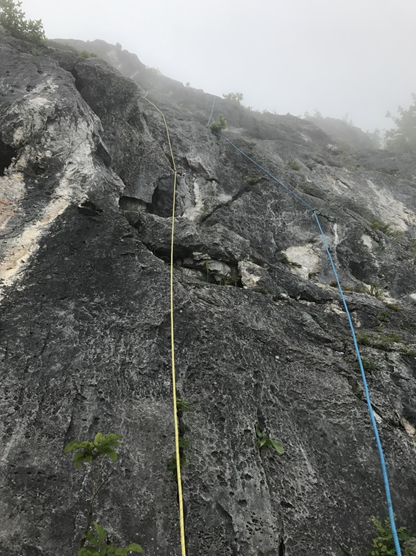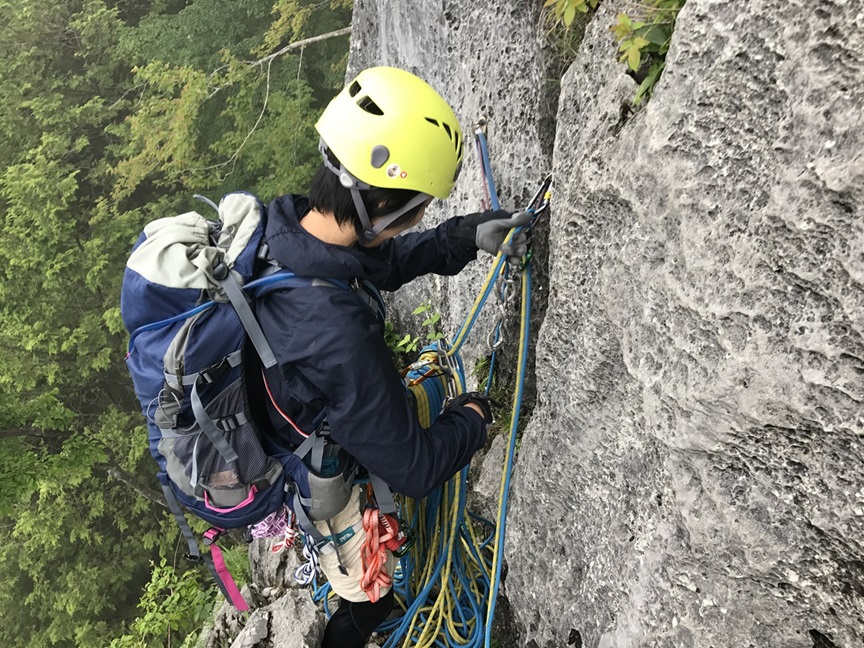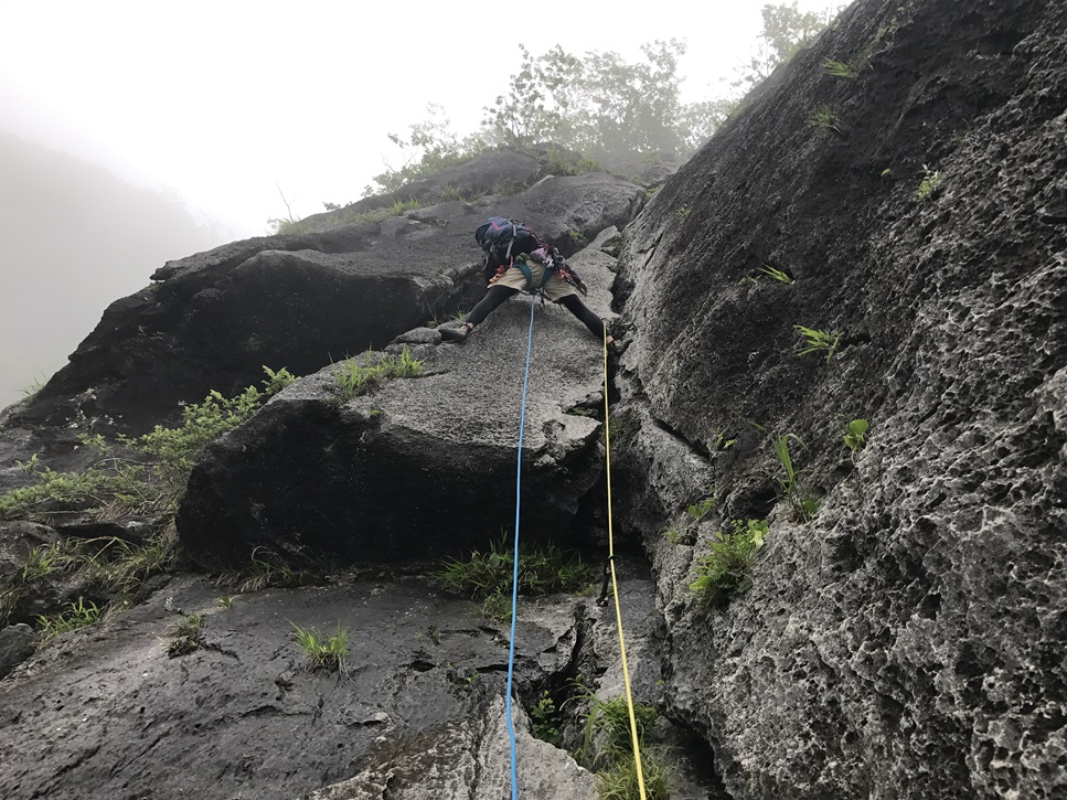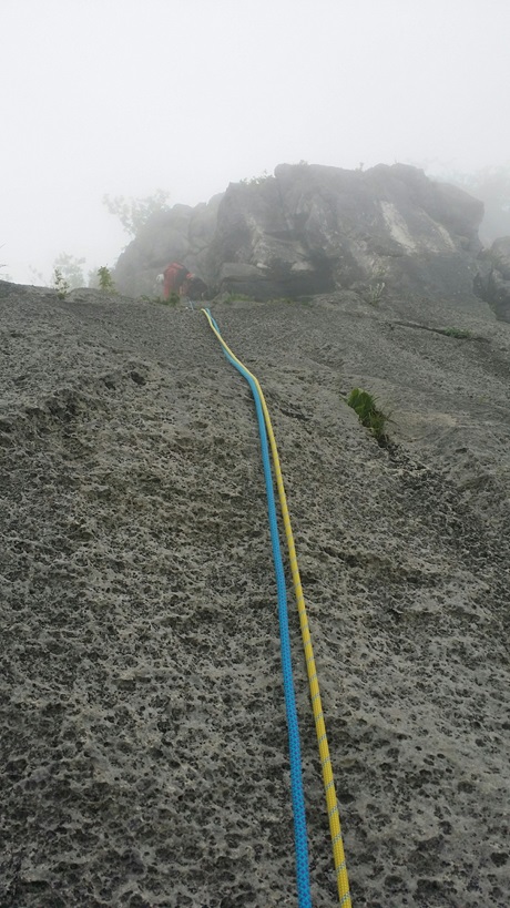 ★感想:天気予報に反して朝まで小雨・・・マルチピッチのデビューなのにコンディションは最悪でしたが、核心部分もなんとか突破し事故なく無事に登攀することができて良かったです。雨上がりの岩(特に石灰岩)は滑ります・・・んなの当たり前か!!(笑)今回はフリクションが効かず足は滑りまくりましたが手がガバホールドばっかりだったので何とか登れました。