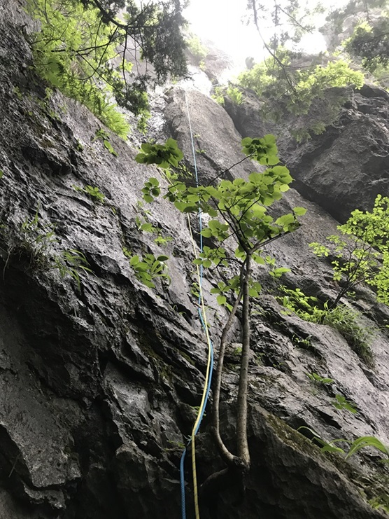 ・核心は厳しかったので(少し濡れているし使えそうなホールドやスタンスを探すのが面倒だったので・・・)時間をかけずに迷わずA0で登りました。