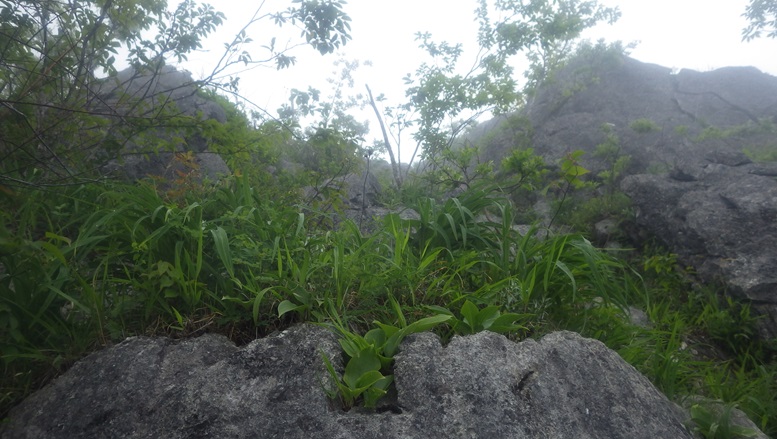 ・左のほうの濡れている岩を使いたくなかったが結局左の濡れている岩しか登れそうになく意を決して登る。