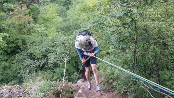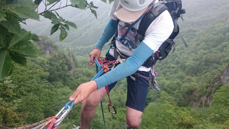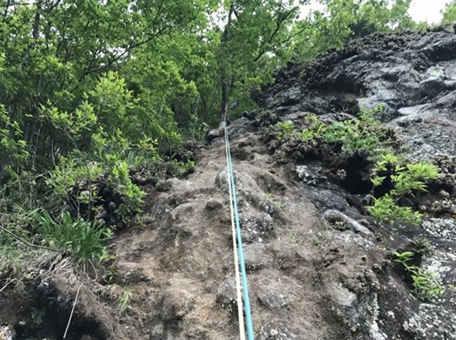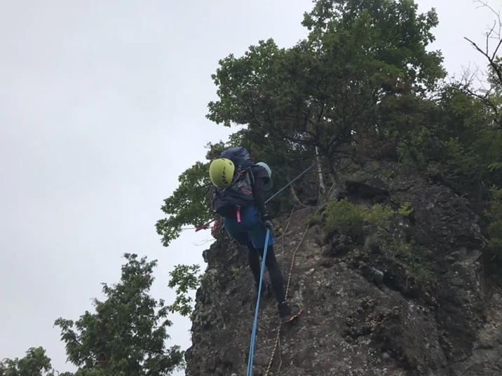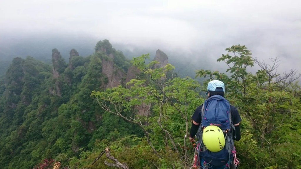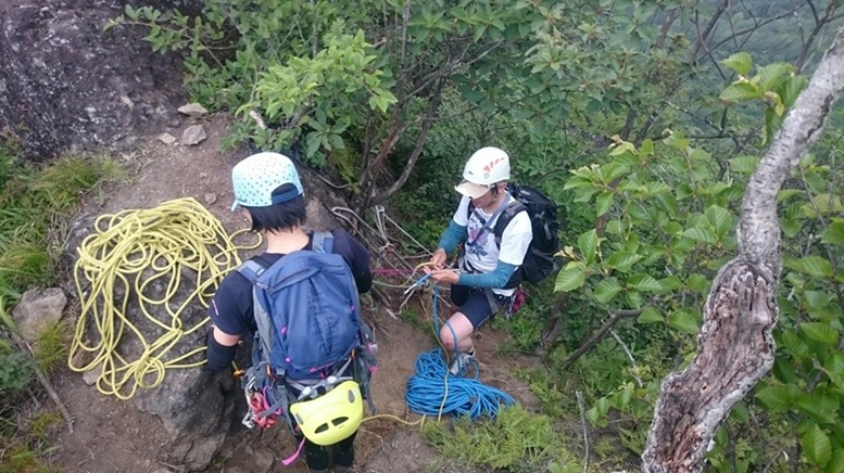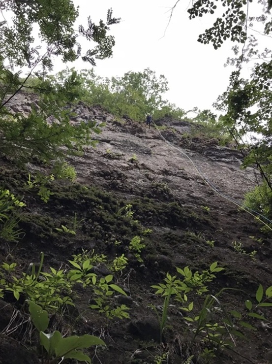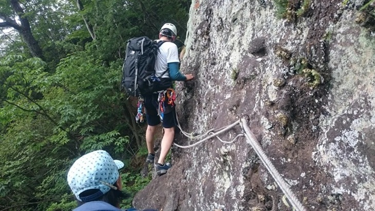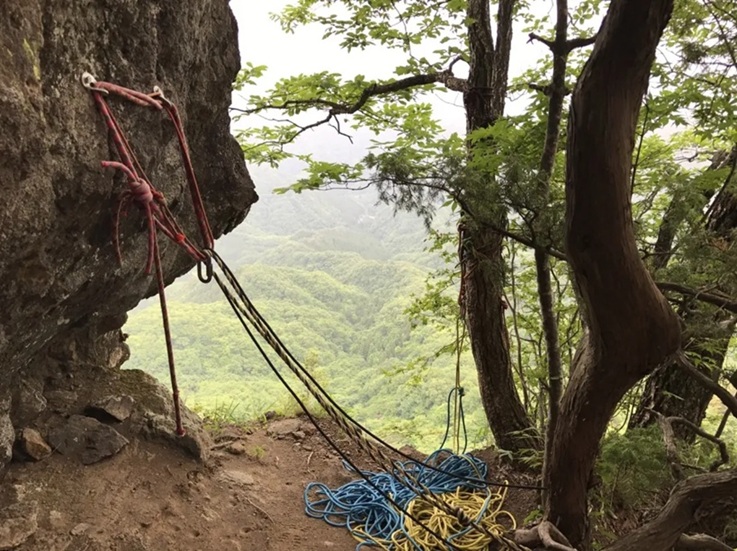 ①西岳を少し下ったところで35m(途中でピッチ切れます。)
