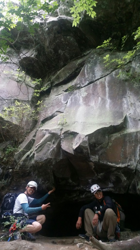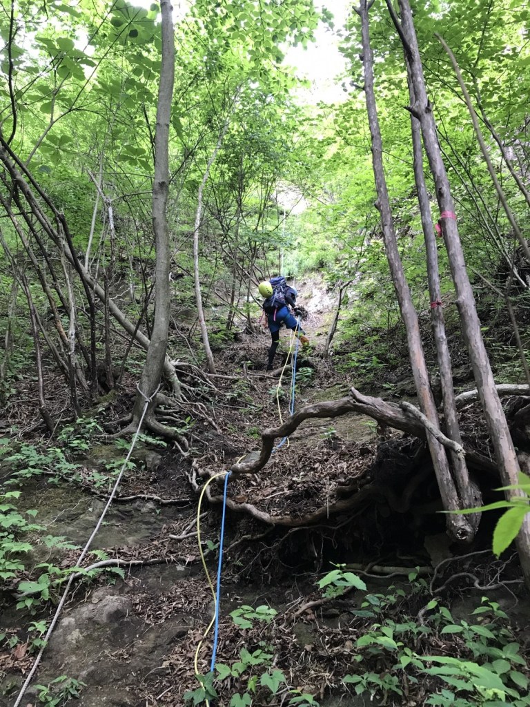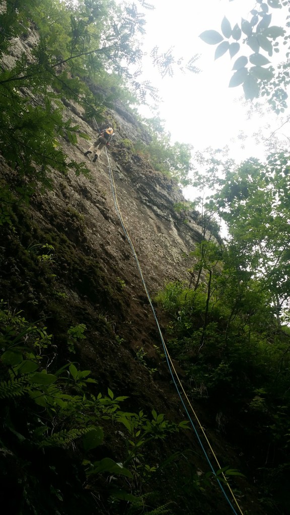 ①西岳を少し下ったところで35m(途中でピッチ切れます。)
