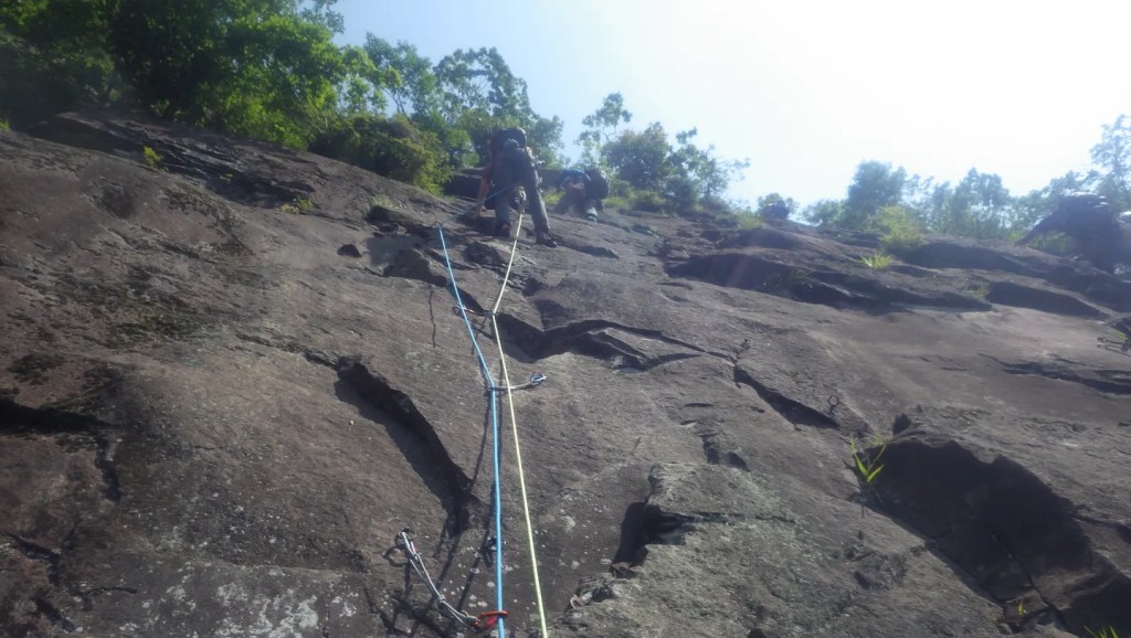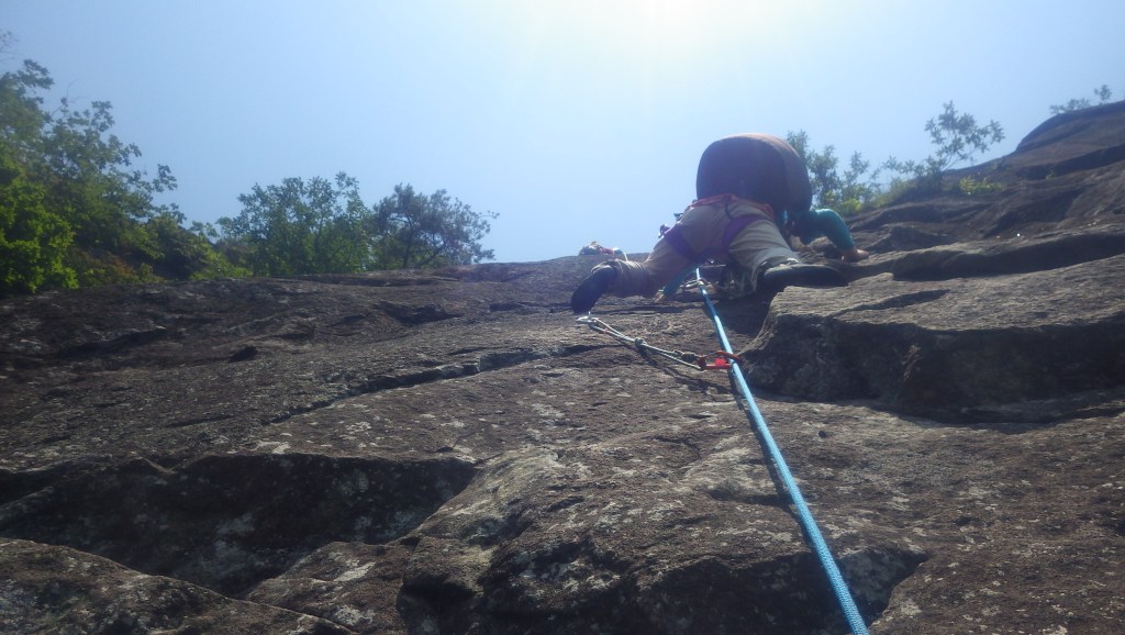 ・登るときに体を上げると持っている手が甘くなり厳しくなるところが何箇所かあった。また各ピッチに1手ぐらいは厳しいところがあった。