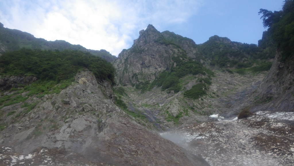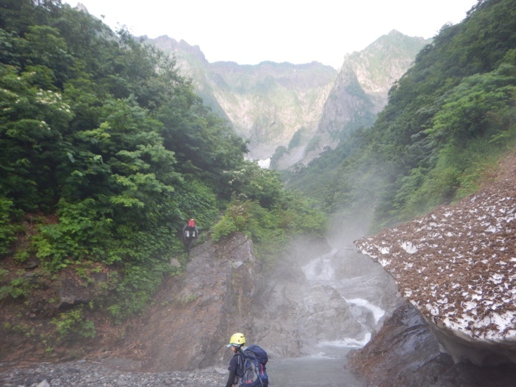 ・一ノ倉沢出合まで雪渓がなく右岸を巻いて雪渓に下りた。帰りも右岸の草付から這い上がり高巻いた。(後日中央稜へ行ったときに気付いたが本来は右岸高巻き道から沢へ下り左岸から雪渓に乗ればスムーズだった。)