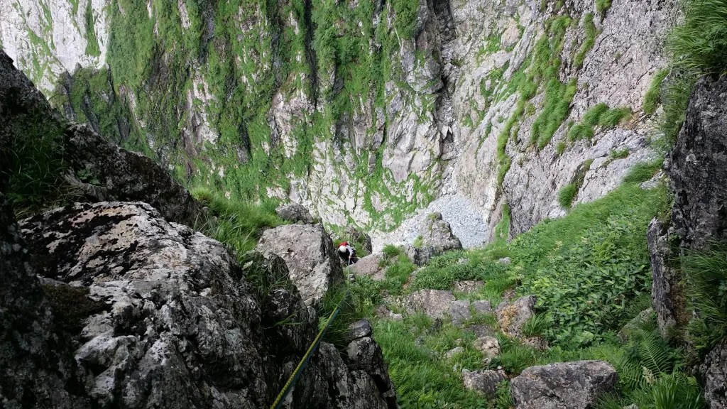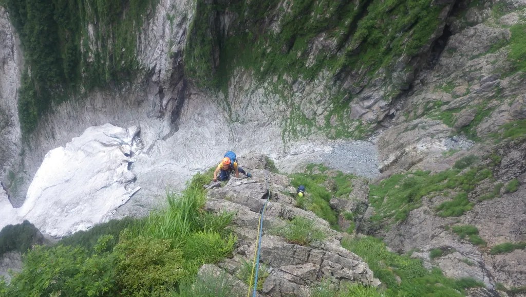 ・6ルンゼ右俣から懸垂下降する。