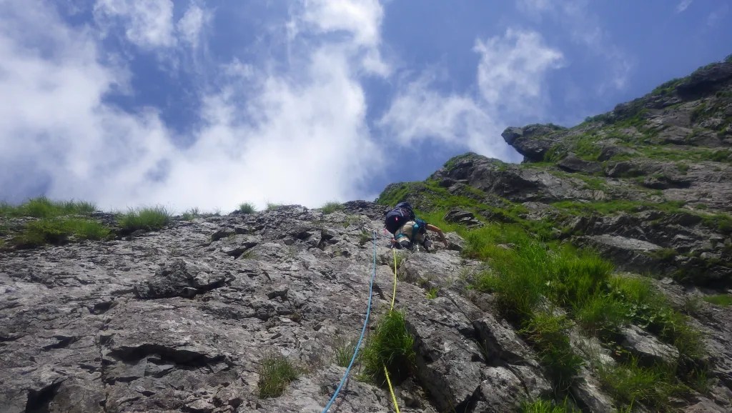 ・リッジに上るところでは草でスタンスが隠れているところがあり不用意に足を乗せると濡れていて滑るので注意が必要。