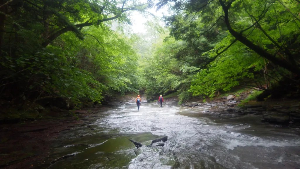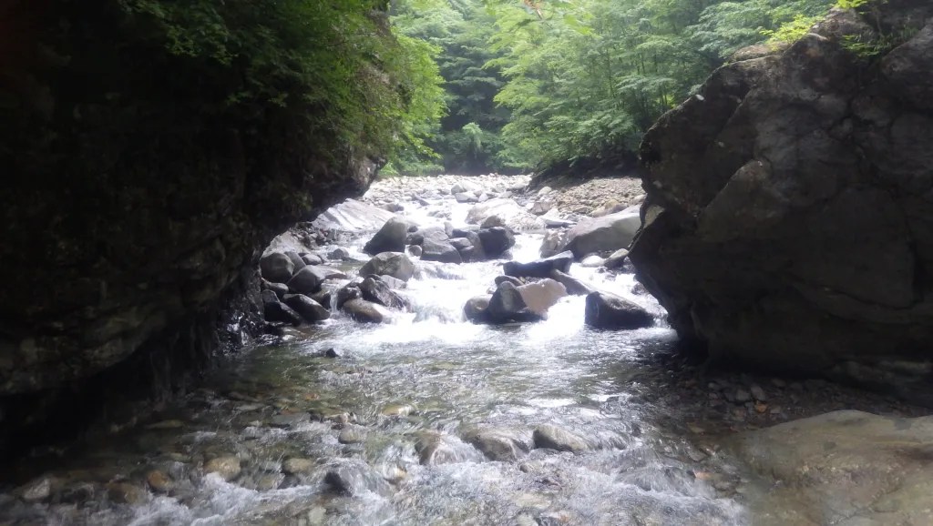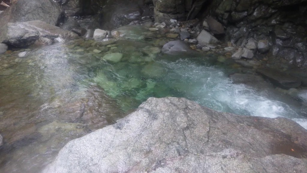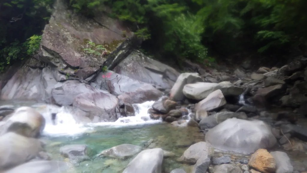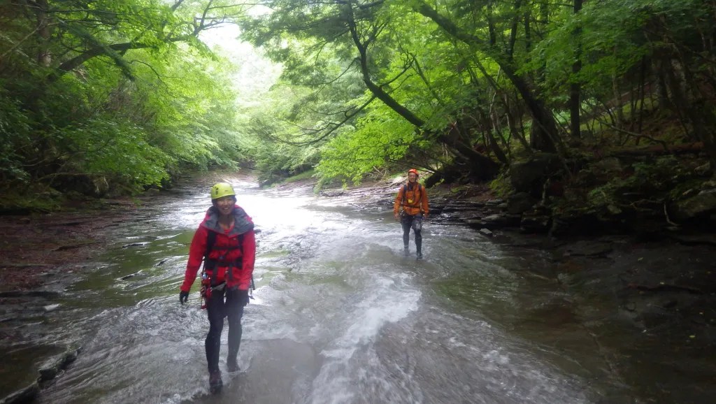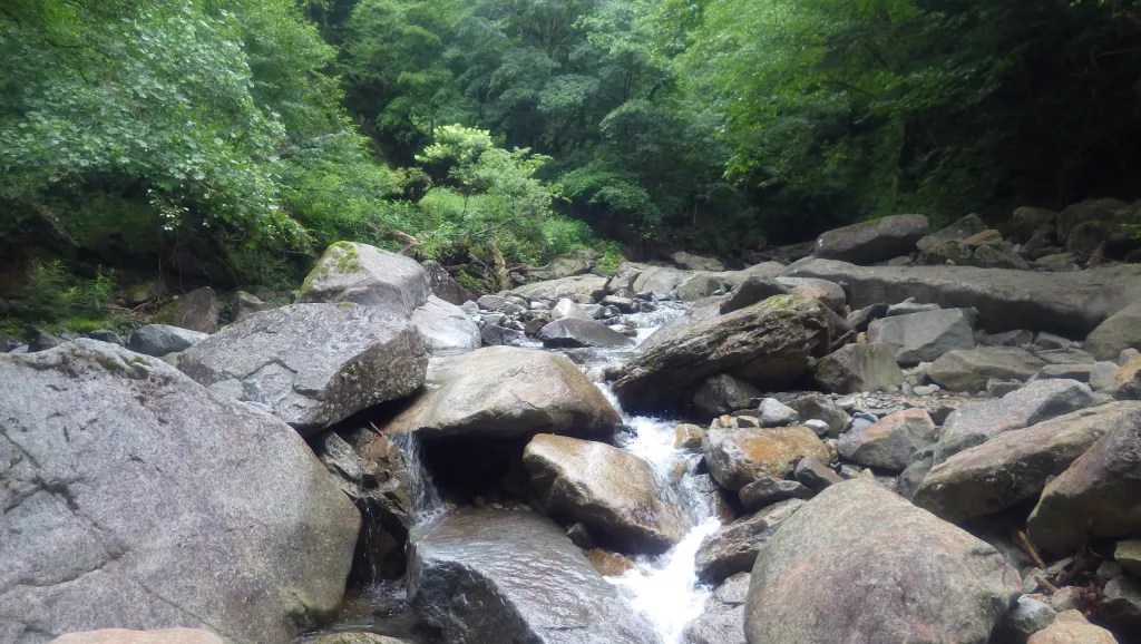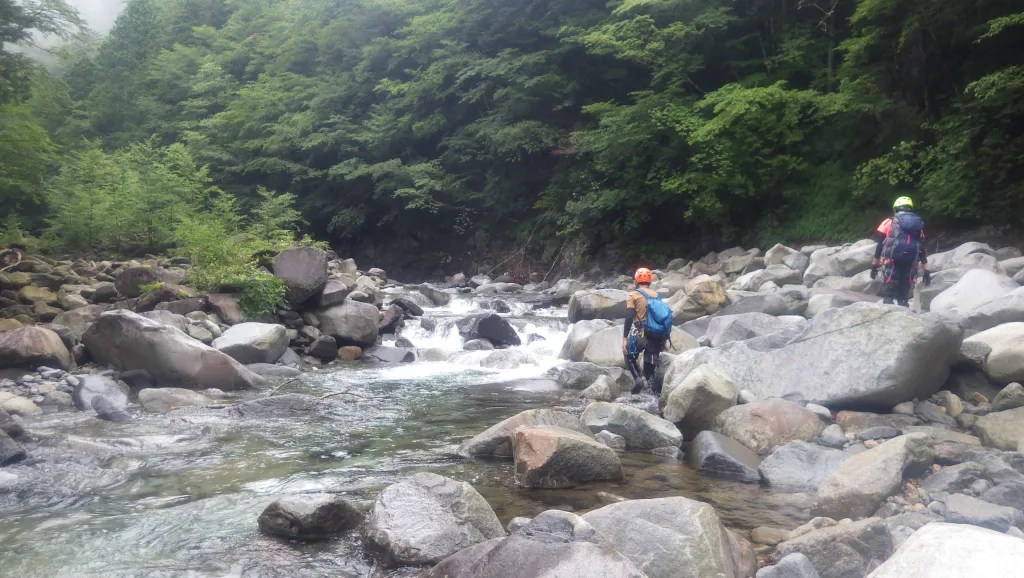 ・全体的に特に厳しいところはありませんでした。ロープを使うところもありませんでしたが、念のため携行はしたほうがよいと思います。(今回はそのまま尾根上まで沢を詰めるつもりでしたが雨により途中撤退し、下山時の魚止の滝を下るときに懸垂下降でロープを使いました。)