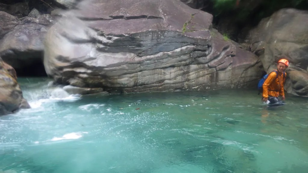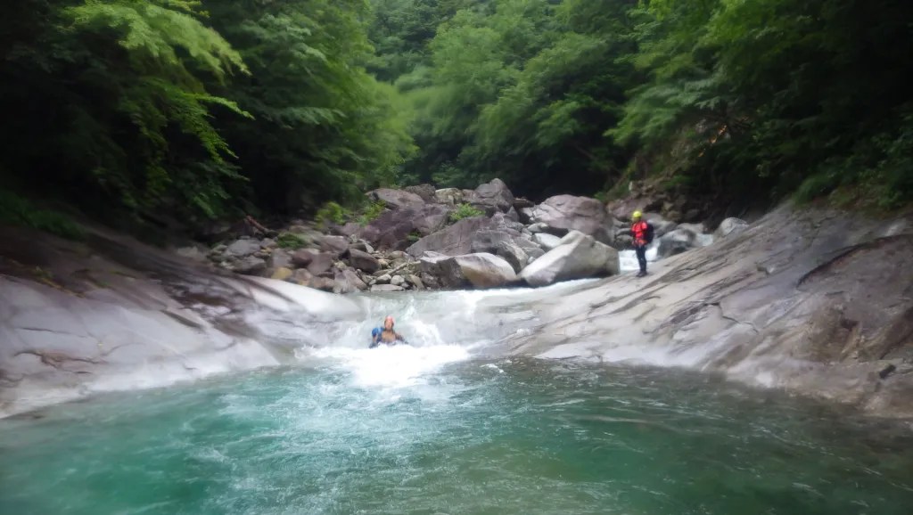 ★感想(山宮):水の色はエメラルドグリーンで綺麗で癒されました。沢登りをするなら明るい沢で厳しくない沢がいいなーと思いました。