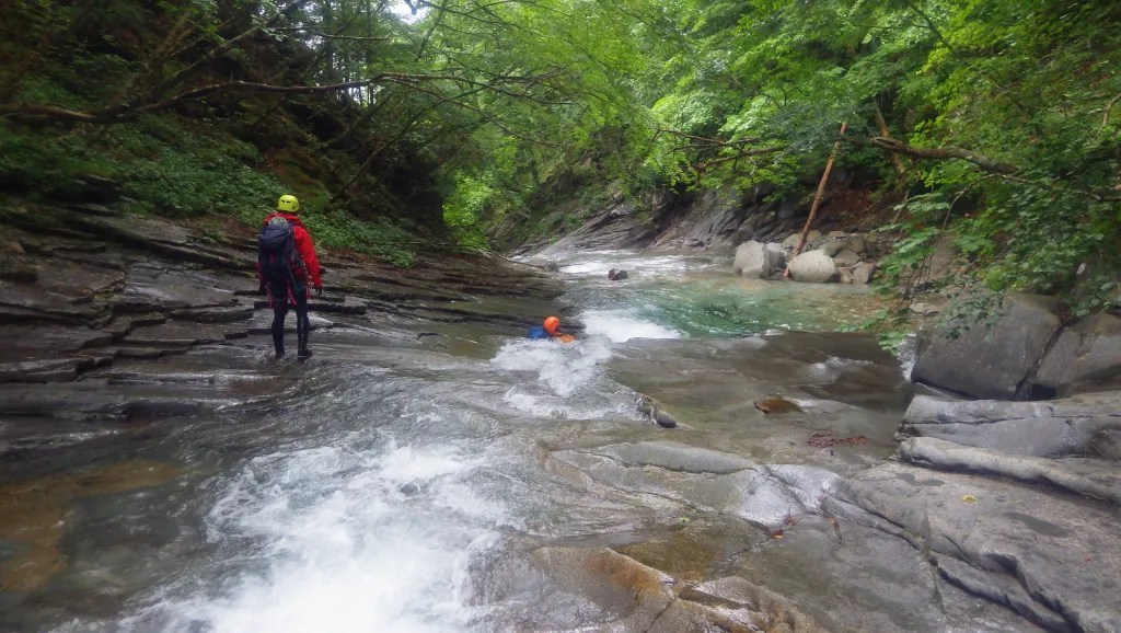 ・千畳のナメ~撤退地点まで2つの滝を高巻きましたが、高巻きの道がしっかりしていてビックリしました!!(普通、高巻きと言えば泥付き草付きを落ちないように登り滑る斜面をトラバースしながら高巻いていくイメージしかないので・・・)