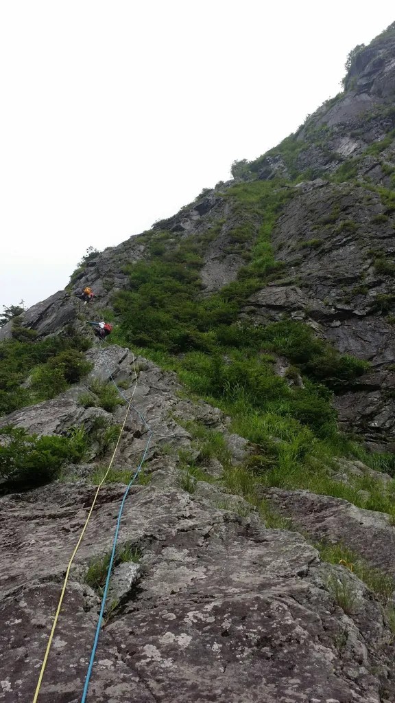 ・先行PTについていってしまい間違って直登した。(正解は2P目終了点から右へトラバースして衝立岩正面に出なければならない。)