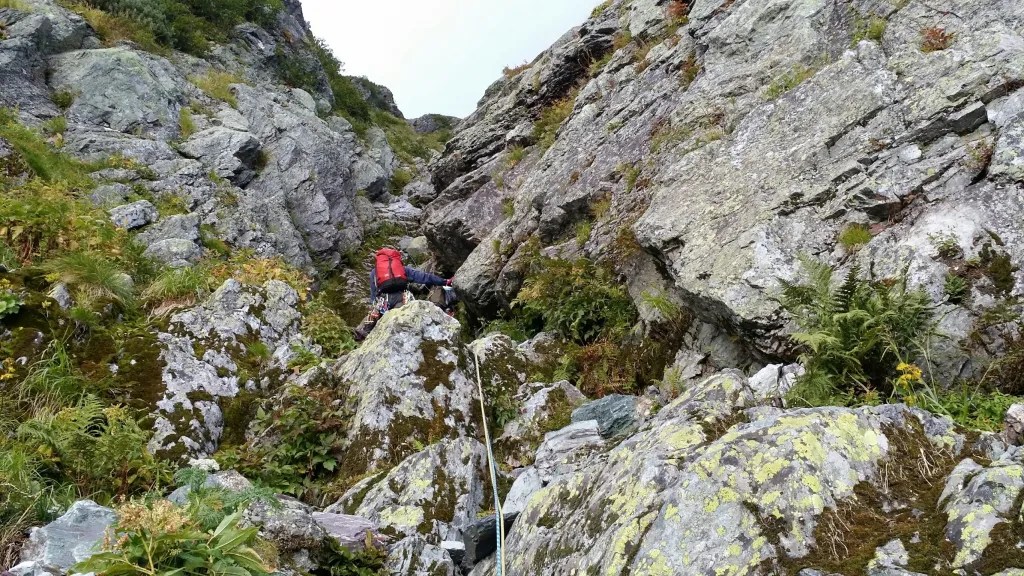★コース状況:横断バンドの一部はザレていて滑落・落石に要注意。Cガリーはザレザレで落石に注意。第4尾根主稜の最後の城塞ハングの1つ目と3つ目の残置ハーケンはグラグラしていた。一般登山道はよく整備されている。