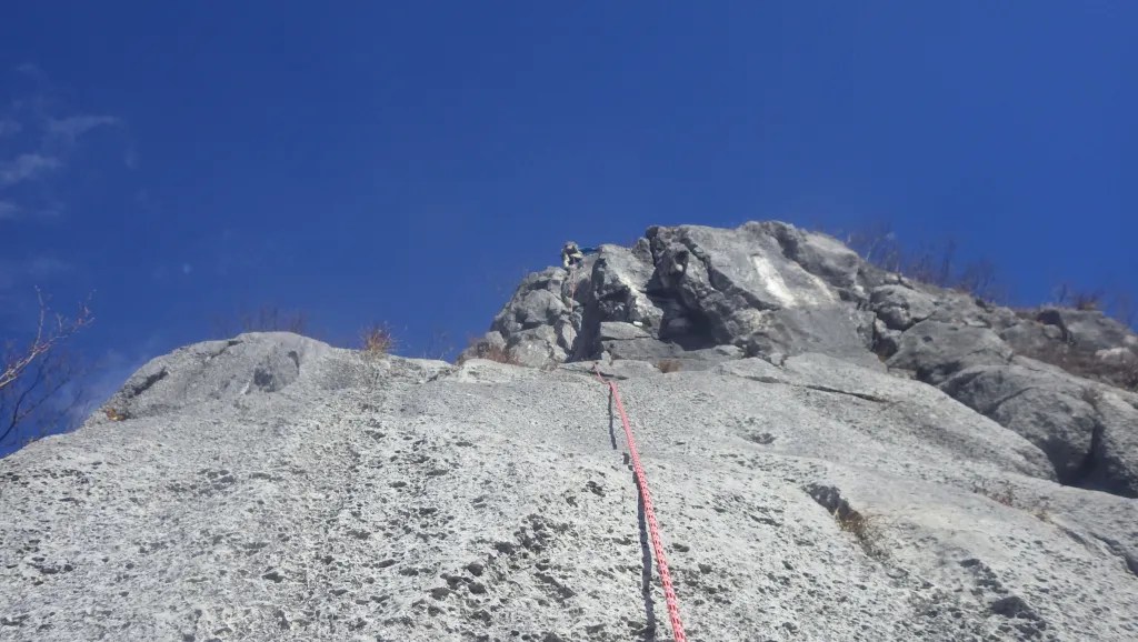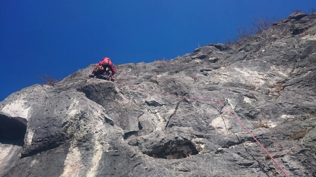 ・ロープ屈曲しないようアルパインクイックドローを積極的に使った。
