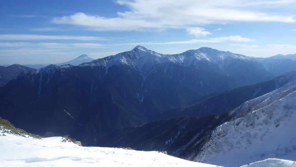 ★感想:今回の核心は家から登山口までの車移動でした。( ほんの数年前なら睡眠時間が短くてももう少し平気だったような気もしますがここ最近の睡魔には勝てないかんじです。。)日没後の真っ暗な河原は過去に歩いた記憶と朝歩いた記憶それにGPSの軌跡を見ながら歩きました。暗い河原を歩いて思ったことは、勾配のある登山道より平坦な河原歩きの方が比較的簡単に普通に歩けると思ってましたが、どこをどう歩いてもOKな河原歩き(=好き勝手歩けるので踏み跡が不明瞭。)より、まだ踏み跡がしっかりしている登山道の方が歩きやすいと思いました。過去2回の年末年始と比べるとかなり雪が少なかったと思いました。風は冷たかったですが強くもなく穏やかで晴天の仙丈ヶ岳を楽しめました。