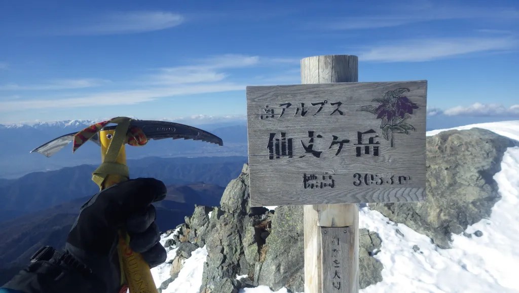 ★コース状況:戸台から丹渓山荘跡までの河原歩きは目印や案内板が多くなってた気がします。 (設置関係者の方々、ありがとうございます。) 最初は河原の右岸をひたすら歩き、途中から左岸へ行き目印や案内板に導かれていくと丹渓山荘跡に辿り着きます。年末年始に戸台から仙丈ヶ岳に登った過去2回と比べると今回は雪はかなり少なかったです。 森林限界を超えた稜線上では夏道が出ているところもありました。トレースはありました。( 4合目まではそこそこ踏み固められていて、4合目からは踏みぬくところもたまにありました。)