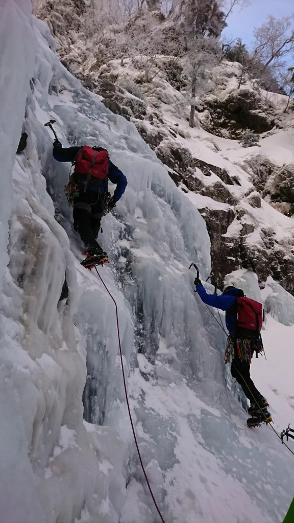 ■ジョウゴ沢・・・F2とナイアガラの滝でロープを出しました。その他はフリーで登りました。氷は良い感じの硬さでした。