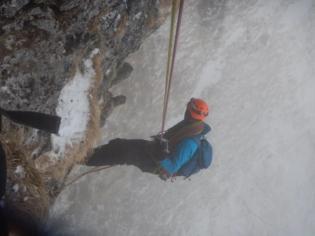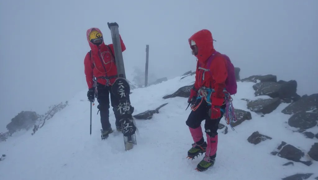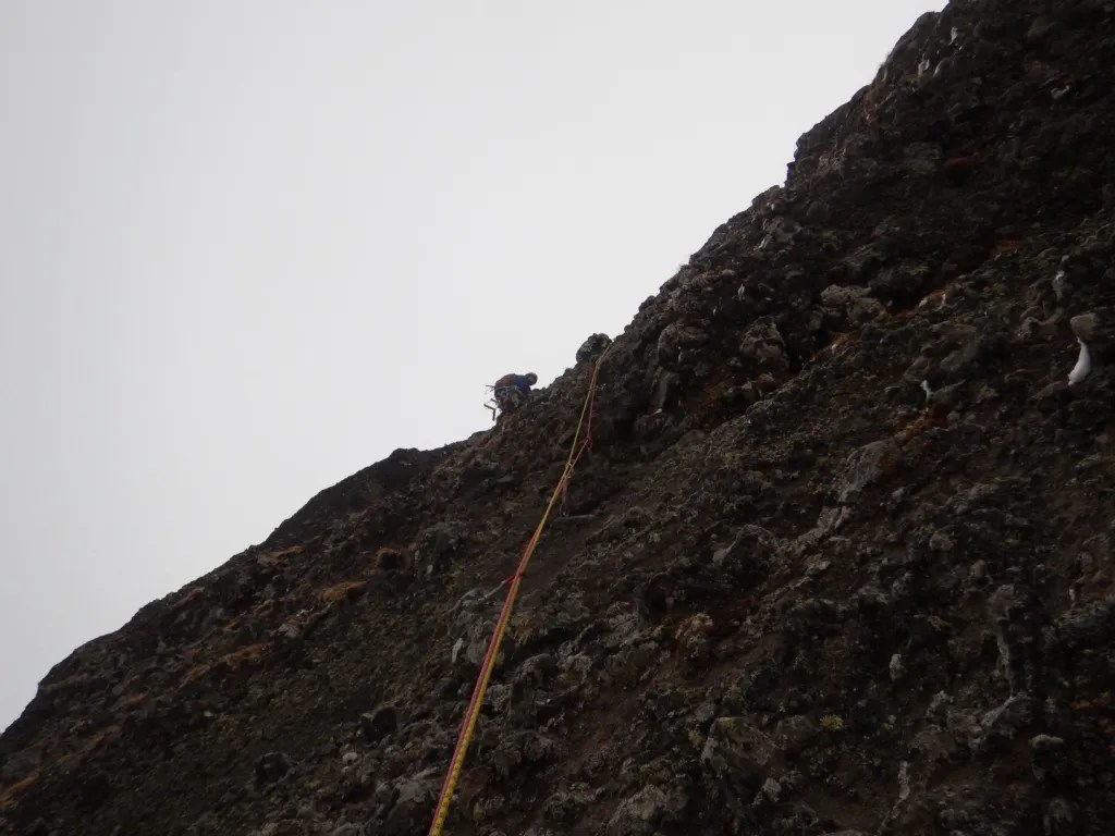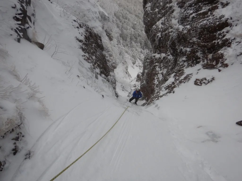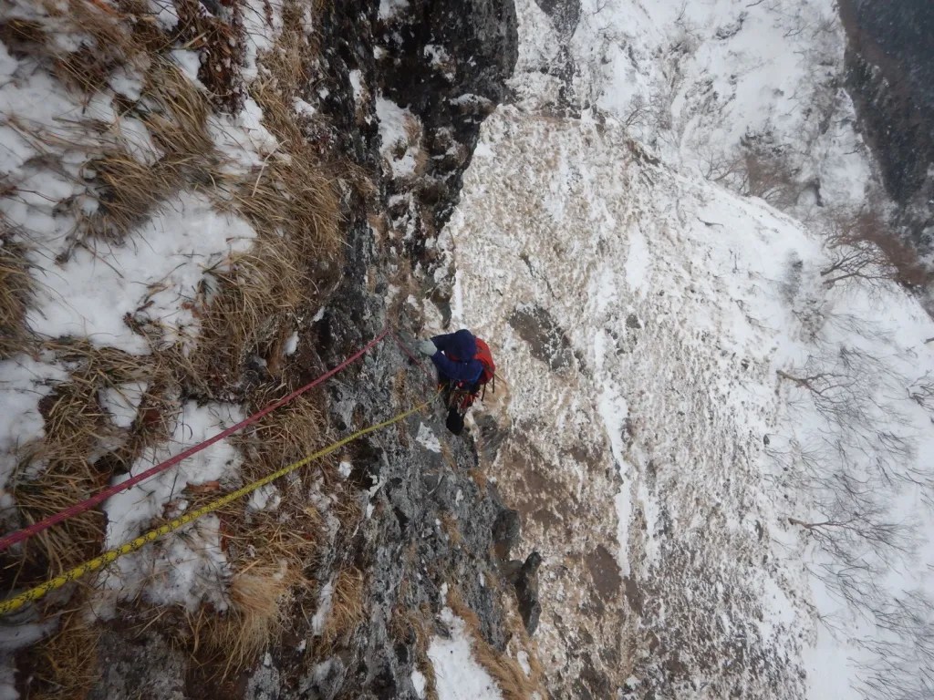 ■大同心雲稜・・・大同心雲稜は石附・岩出ペアで登りました。アイゼンアブミトレの成果を発揮すべく気合が入っていてようですが先行パーティー待ちの待機時間&天候悪化のため、最初の2ピッチを登ったところで敗退決定し懸垂下降して下山してました。完登できずとても悔しがってました。