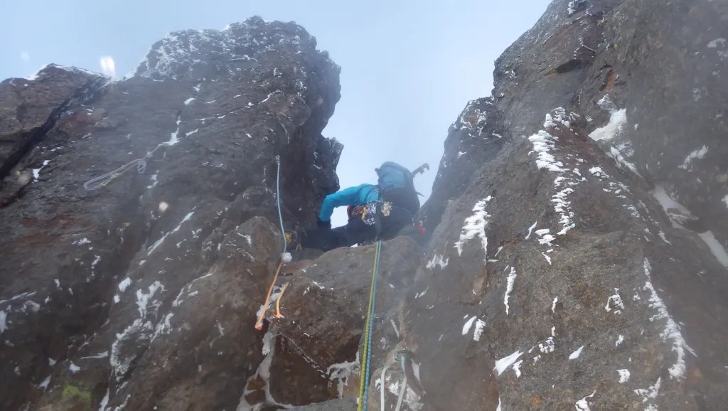 ■赤岳西壁主稜・・・中間支点は乏しいです。西面で日が当たらず日陰&冷風