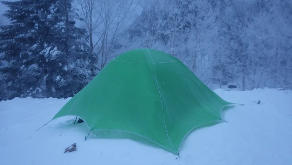 1/3 曇り&雪→晴れ(風はそれほど吹いてはいなかった。)暴風雪(樹林帯の中でも風が強く吹き抜け、雪も止むことなく終日降ってました。)