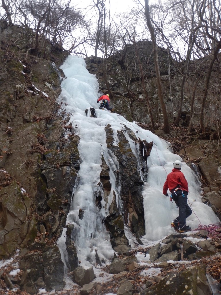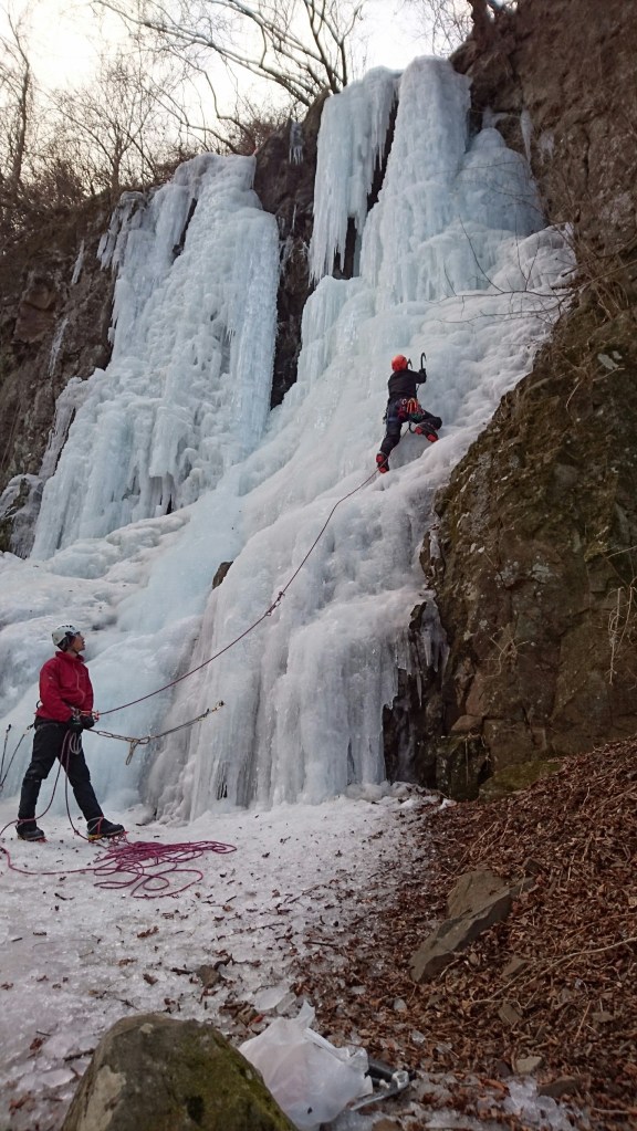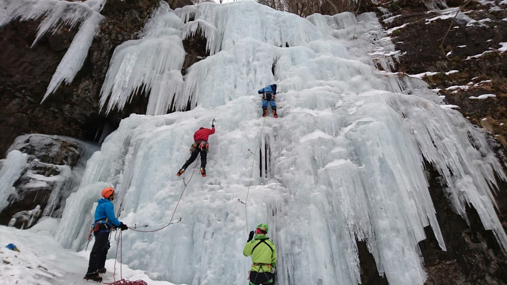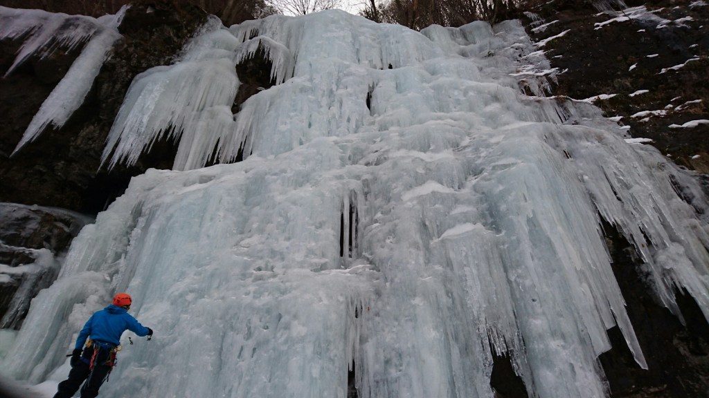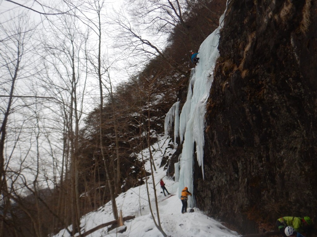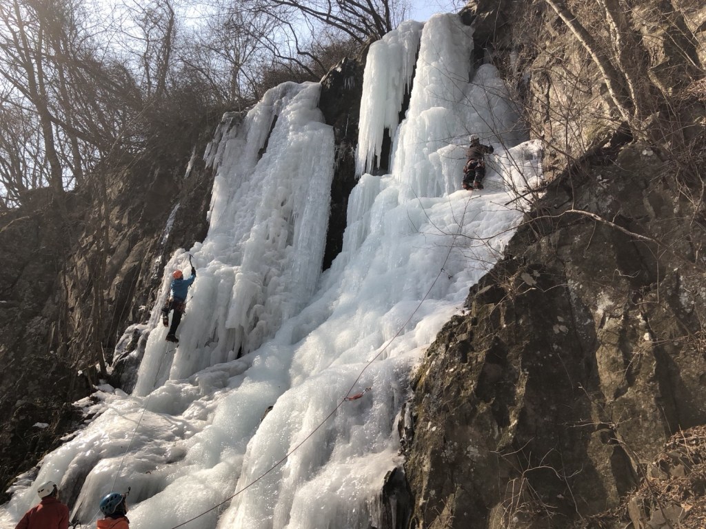 ★感想(山宮):今回は八千代温泉『芹の湯』に泊まりたくて西上州へアイスクライミングに行ってきました。情報通りの温泉宿で最高でした♫アイスクライミングのほうはというと神津牧場インディアンサマー広場のアパッチ、シャイアン、チェロキーの3ルートでリードとトップロープで遊びました。相沢奥壁エイプリルフールの滝では下段25mを山宮→岩出→進藤み→山宮とリード交代しながら何とか登ってそこにトップロープを張って遊びました。傾斜や長さだけではなく氷の硬さによって難易度が大きく変わるということを実感しました。いろいろな場所や環境でいろいろな氷をリードしたいと思いました。
