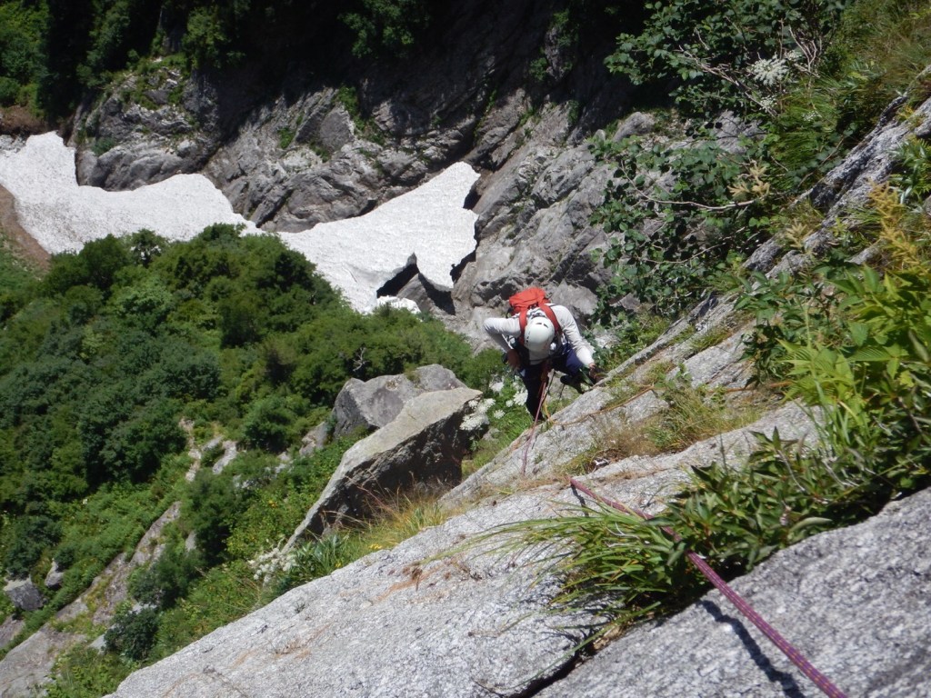 ・全体的に残置支点はしっかりしていました。 (人工Pで1~2個所リングが欠落したリングボルトがあり、そこの2~3mm残置スリングを使うのは先日の黒部丸東緑ルート同様気持ちのいいものではありませんでした。)