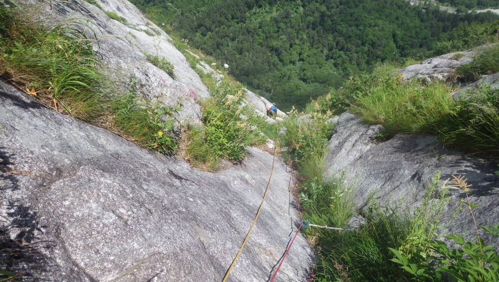 5P スラブのクラック~小ハングを左に出る~スラブ(40m、5.7)(岩出リード)