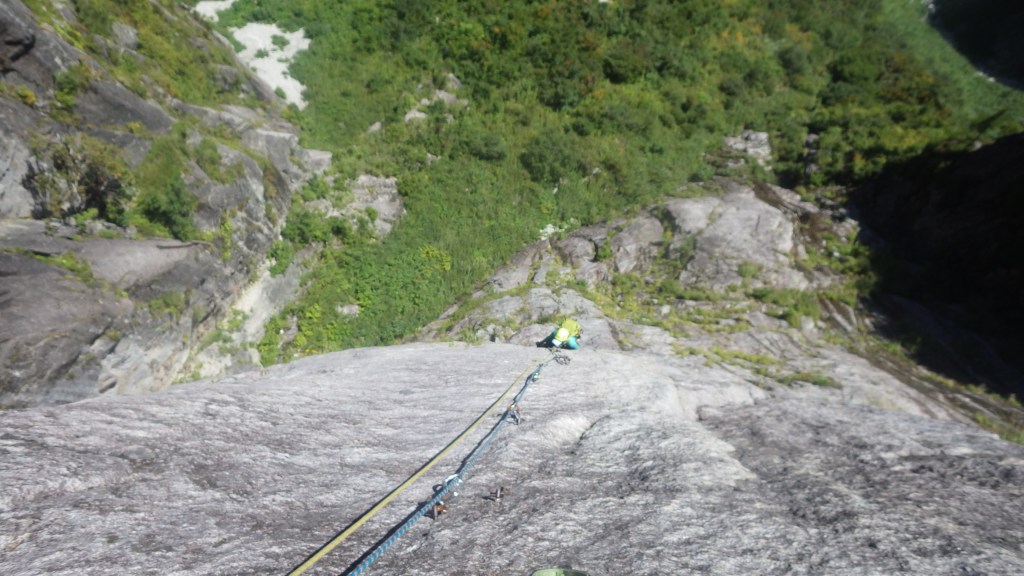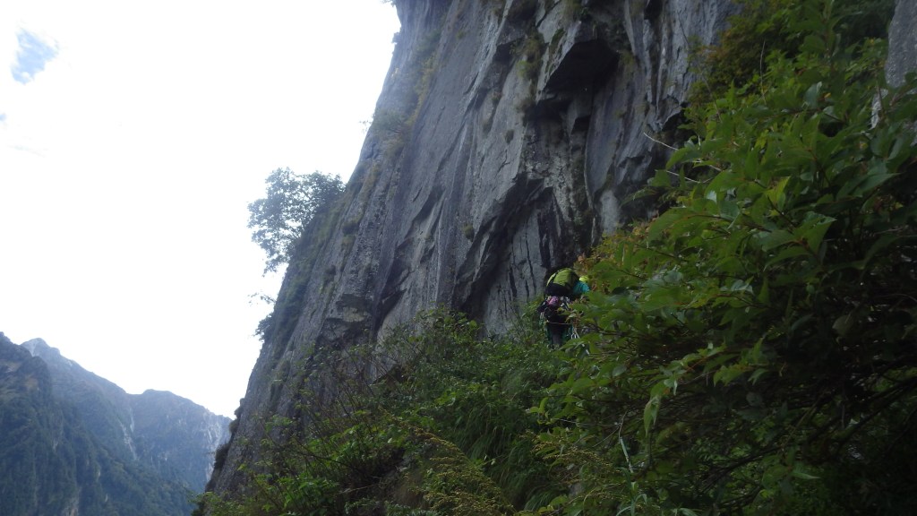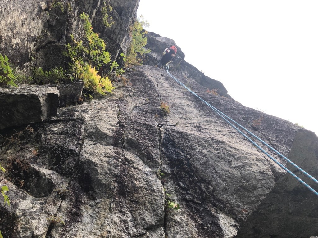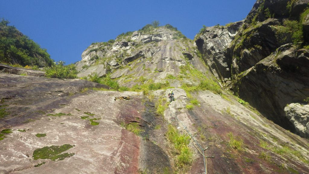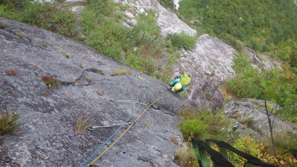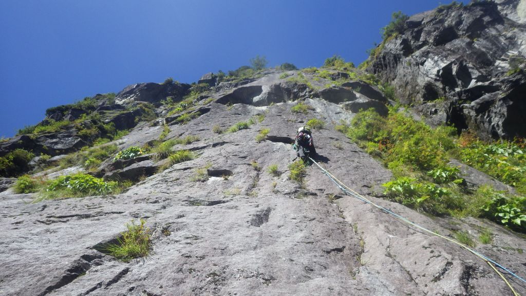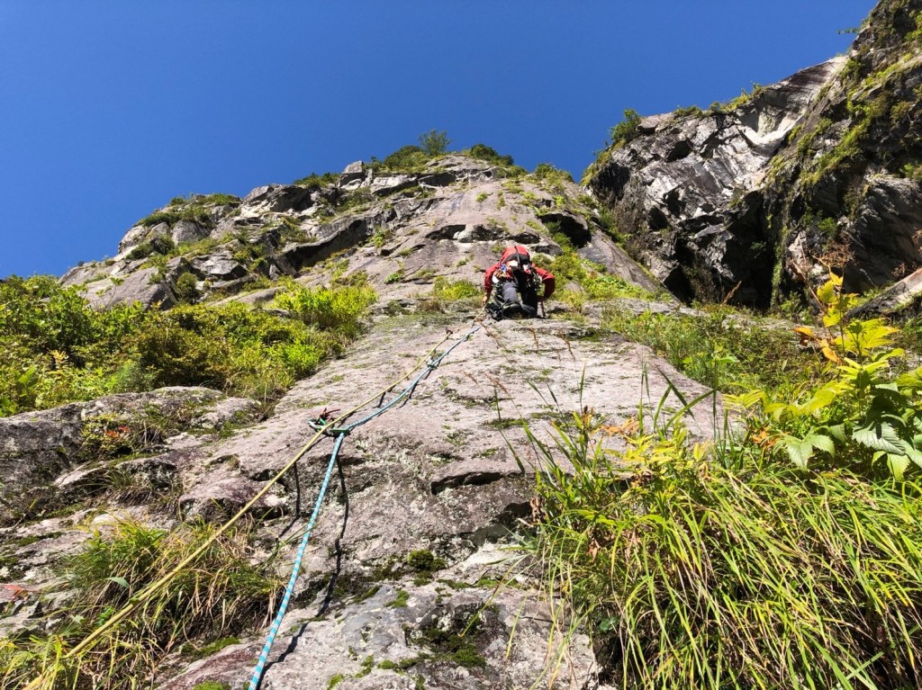 ・2P目終了点手前ぐらいに1箇所フリー区間があり、アブミ最上段に乗ったところからフリーに移行するのでアブミ回収が難しいです。 (今回もフォローに回収してもらいました。)
