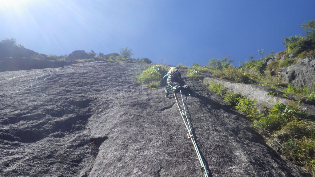 ・前回同様今回も出だしが濡れてましたが、フォローなのでガシガシ行こうと足早に登ったら出だしで速攻で滑ってテンション掛けてしまいました。