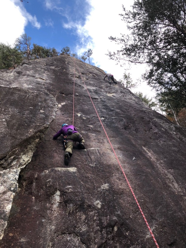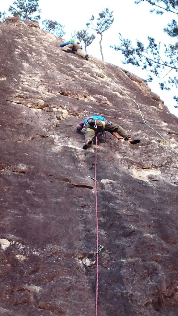 (進藤み)クラックは難しい。父岩のルートは支点間隔が遠くてリードするのは怖そう。