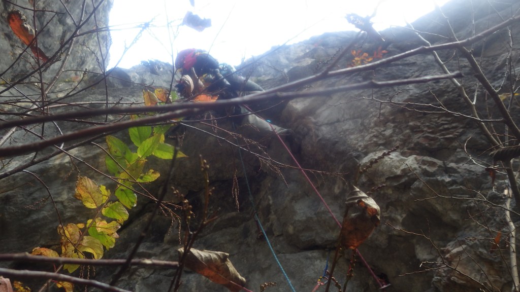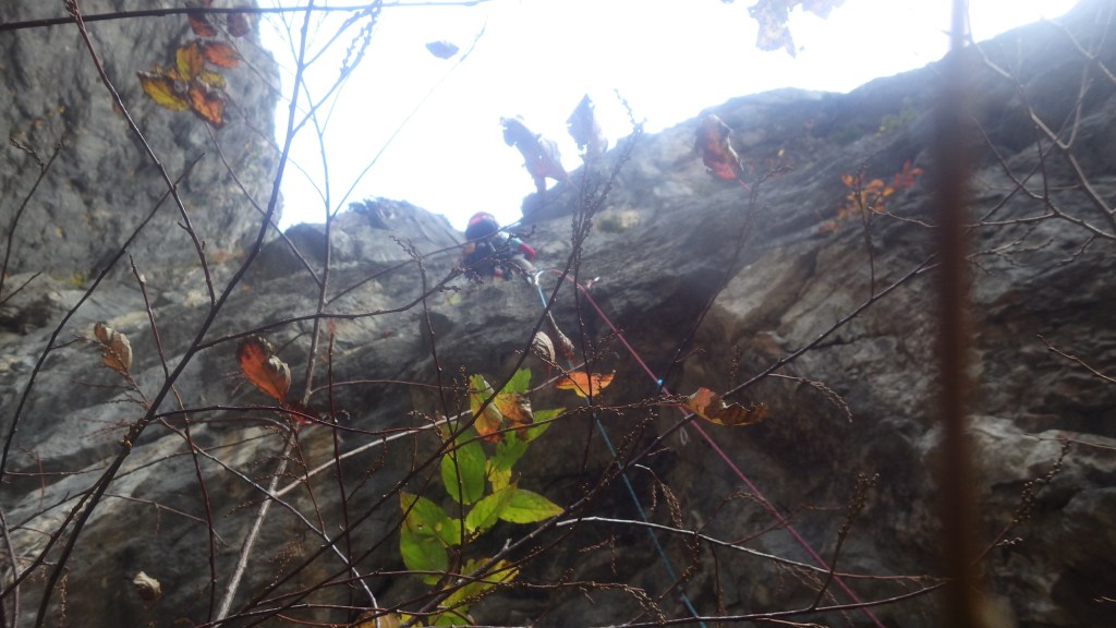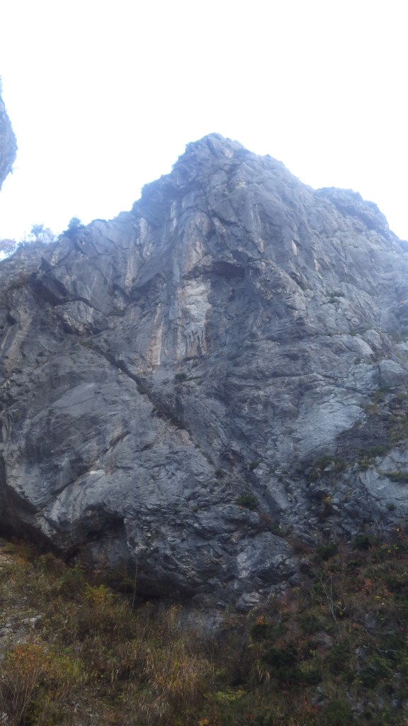 ★コース状況:1P目の12~13m程度登ってたところの残置支点が消滅しました。その次の残置支点までの区間はフリーで登るかジャンピングでボルトを打つことが必要です。(カムが決められるクラックやハーケンを打てるリスはありません。)今後登る方は注意してください。