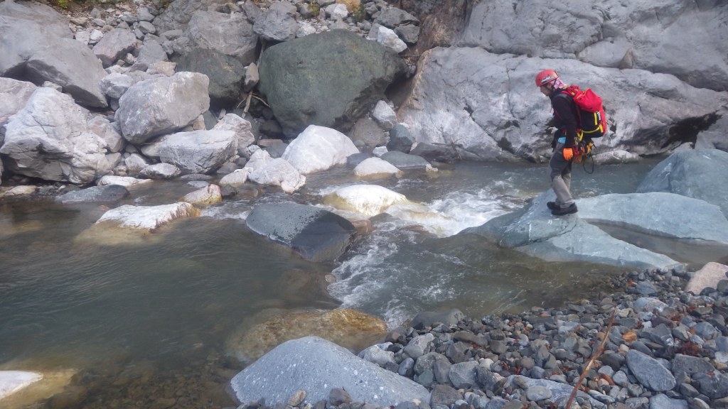 ★コース:小滝川ヒスイ峡展望台のトイレ脇の駐車場→小滝川渡渉→登攀開始するも1P目途中で敗退→小滝川渡渉→小滝川ヒスイ峡展望台のトイレ脇の駐車場