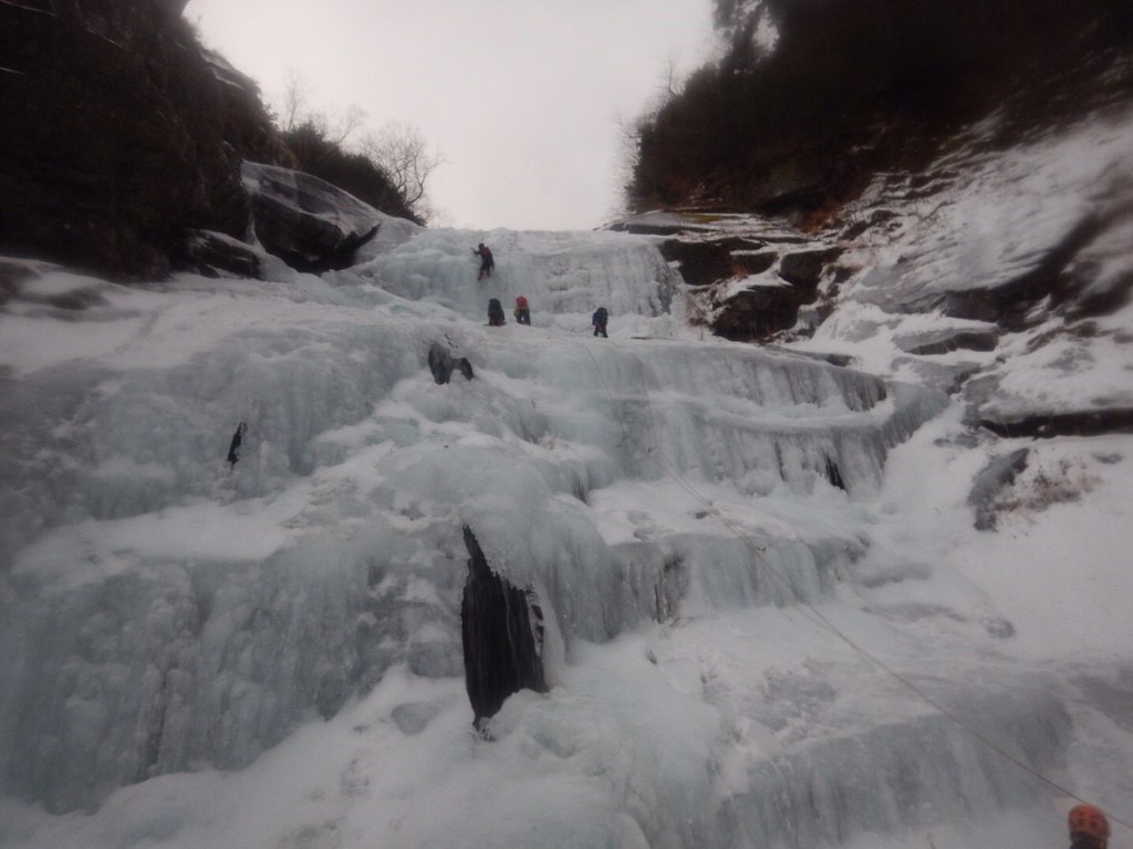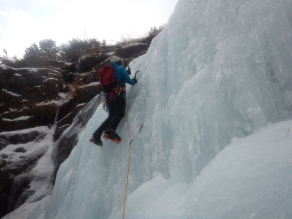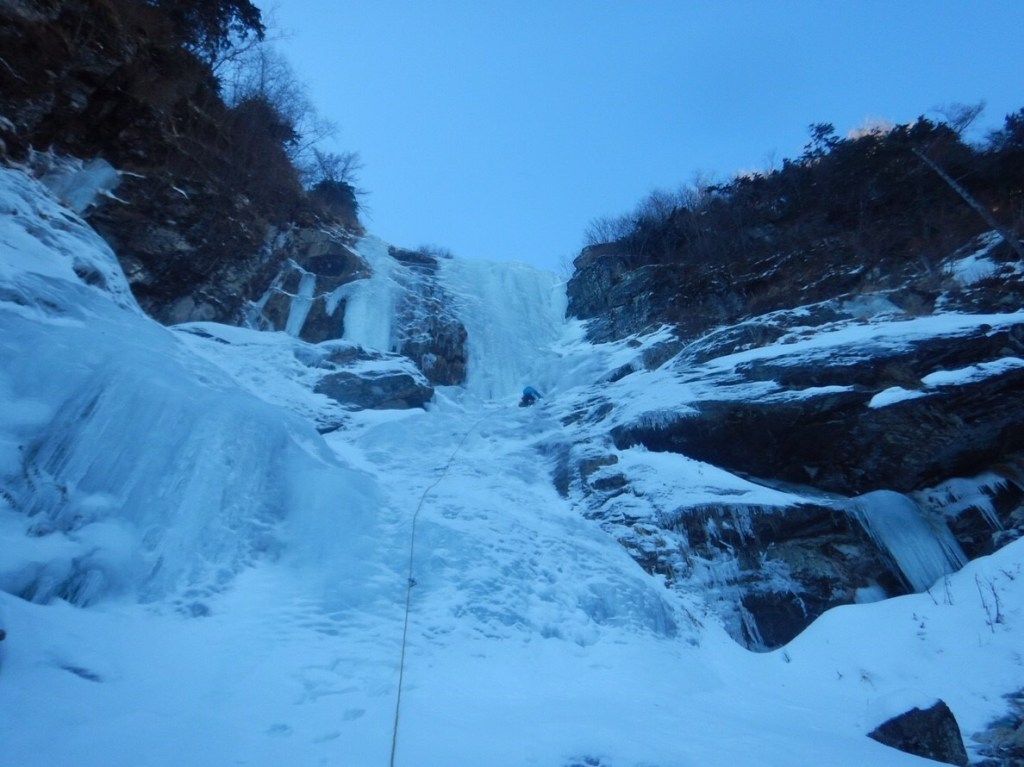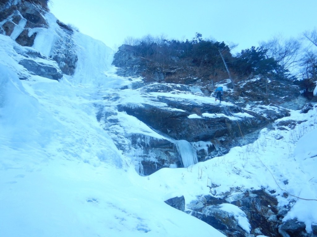 ・奥の滝は氷が薄かったがロープを出して1Pで登った。(岩出リード)