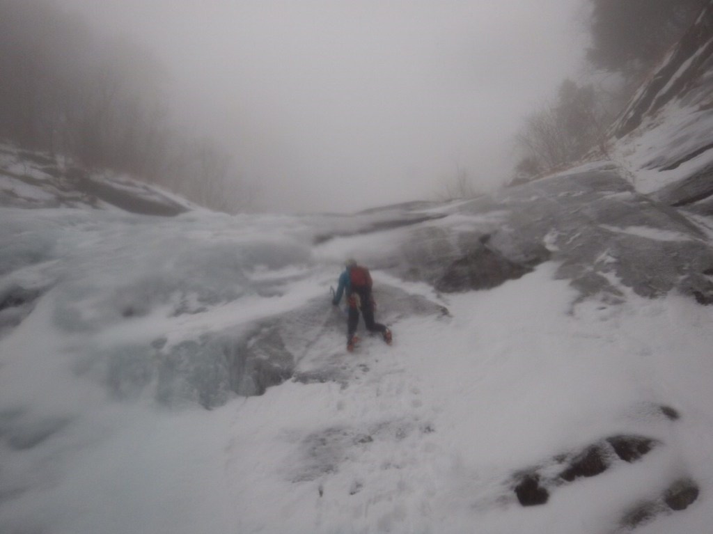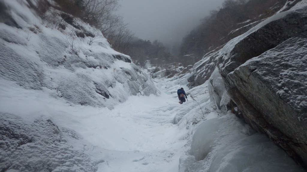 ・奥千丈の滝の取付きはフリーで登りその後の200mのナメは氷の回廊ならぬ雪の回廊だった・・・