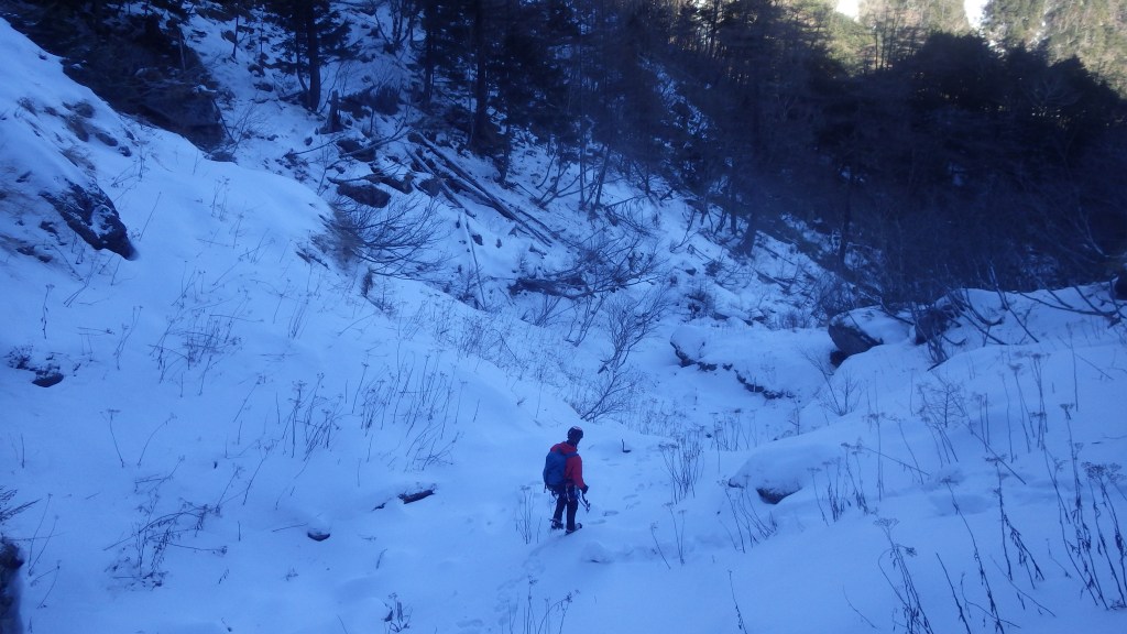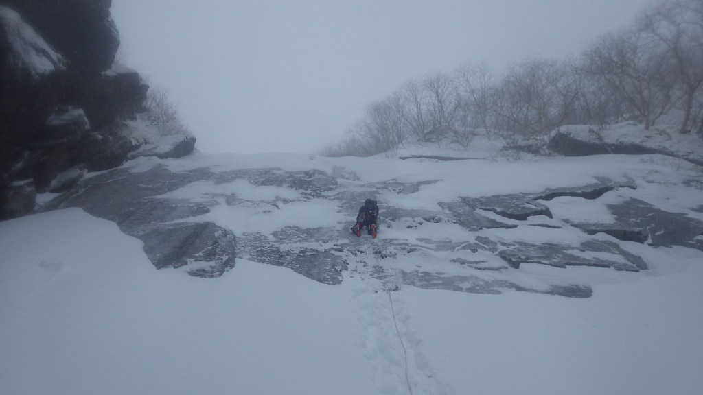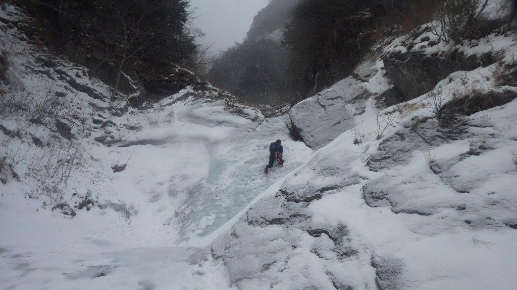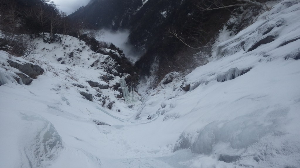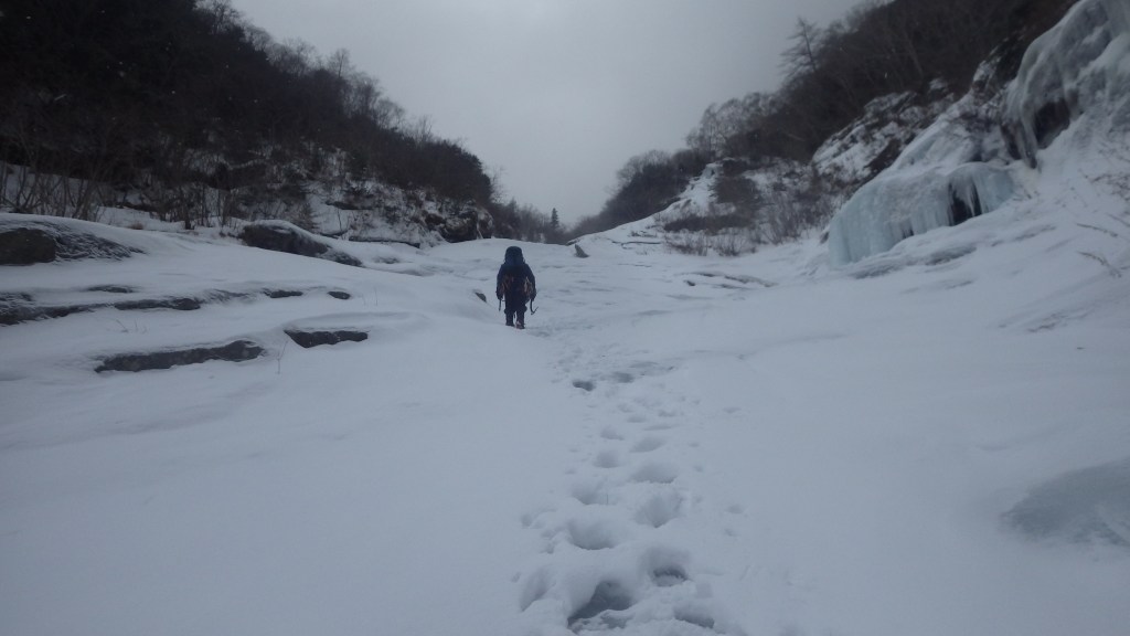 ・黄蓮谷右俣はアイスクライミングというより雪山の様相でした・・・