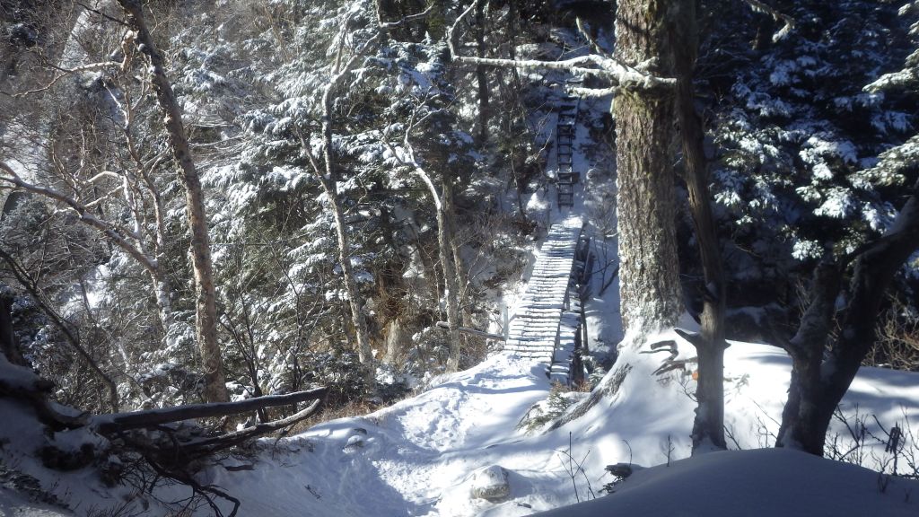 ★コース状況:黒戸尾根登山道は笹の平分岐から雪がちらほら。五合目小屋跡から上はアイゼンを付けたほうが無難。氷の氷結具合は7~8割程度か?黄蓮谷上部は雪が多かった。