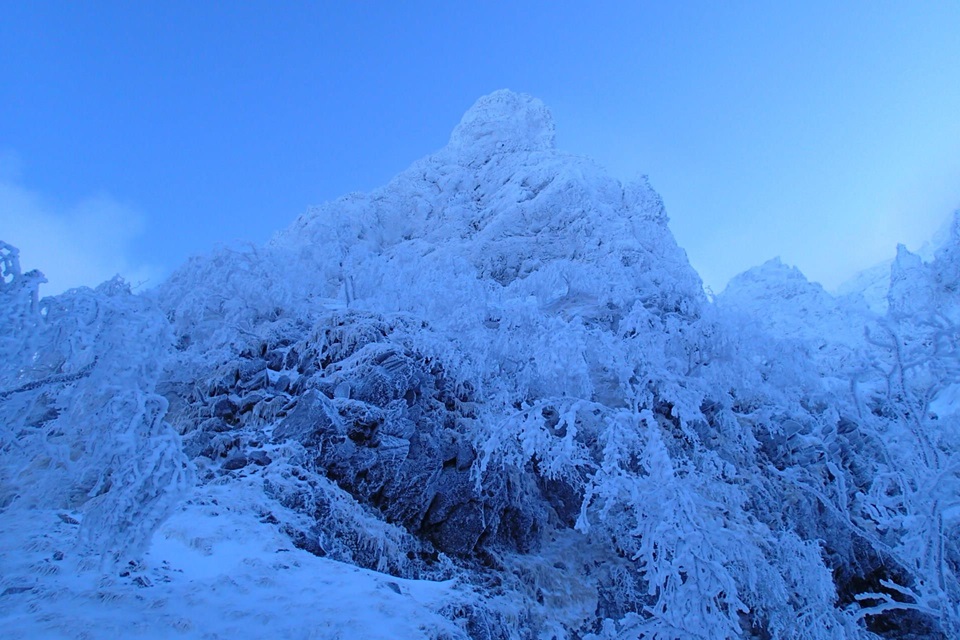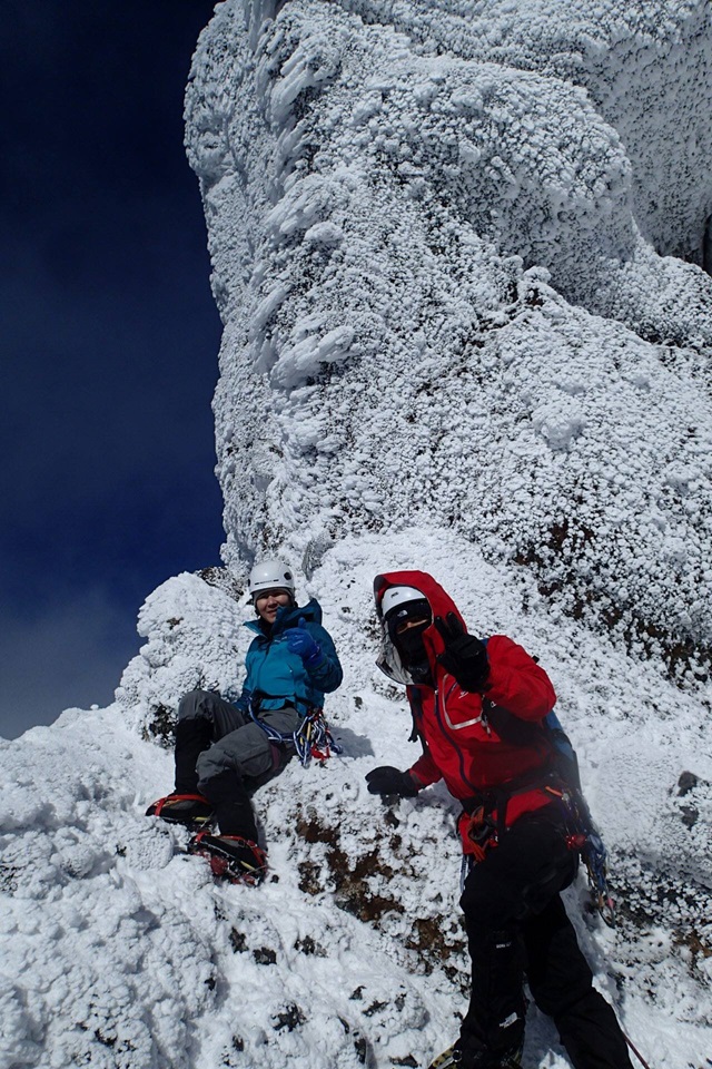 (河村)前日から降っていた雪が大同心の岩にびっしりとついていて、真っ白。支点が雪に覆われていて、最後の頭はまいてしまいましたが、そこまででも楽しい登攀となりました。