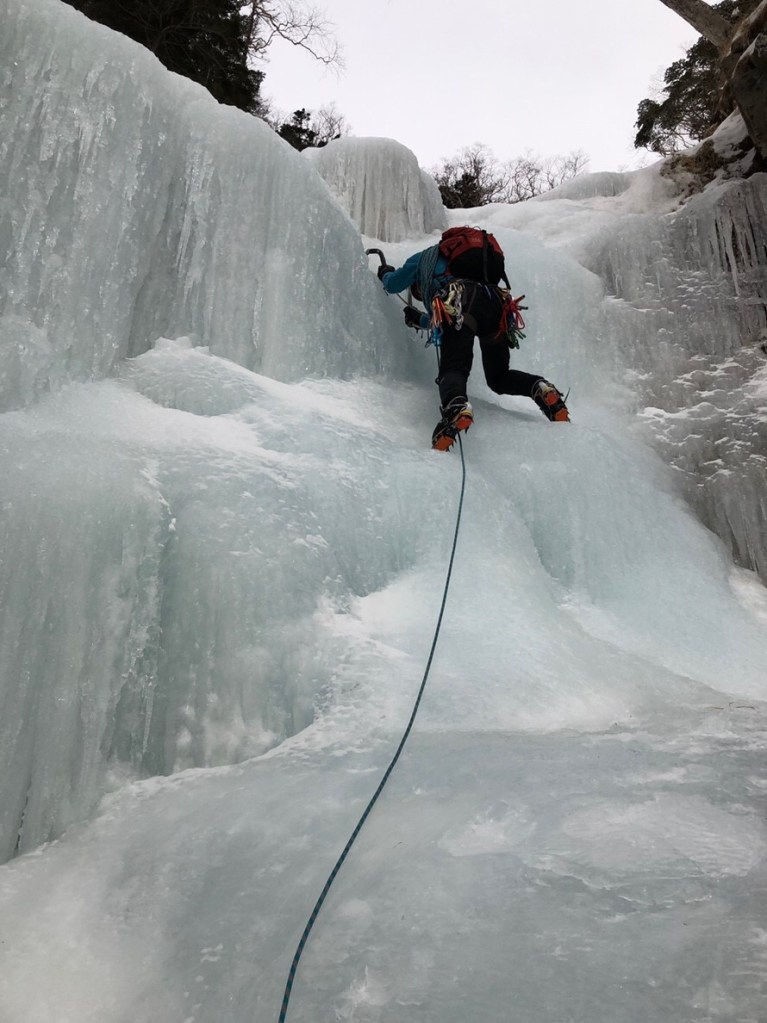 (荒井)今シーズン初アイスは楽しかった。縦爪アイゼンが良く効いて登りやすかった。二股でアイゼンは片付けてからの下山中(というか平らな道歩き)ですが、何でもないような道で雪で滑って転んで足首をひねってしまいました・・・車に着くまで気を抜かないようにしないといけないと思いました。