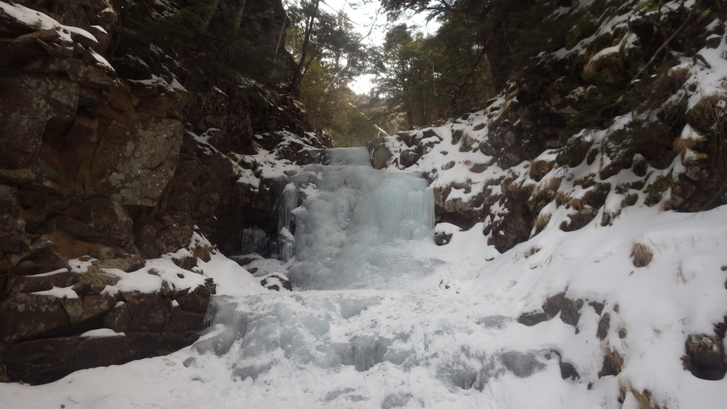 (山宮)大滝のリードでは最後のほぼ垂壁部分は痺れました。 登るのは問題無いんですがスクリュー打つのが(静止しているのが)しんどくてふくらはぎがパンプしました。まだまだ精進が足りません。荒井さんは今シーズン初アイスだったのでほとんどの滝でしっかり確保してフォローで登ってもらいましたが簡単な滝はフリーで登れたほうが時間短縮に繋がると改めて思いました。 今回初めて中央稜の登山道から下山しましたが、御小屋尾根より早く下れるし快適でした。