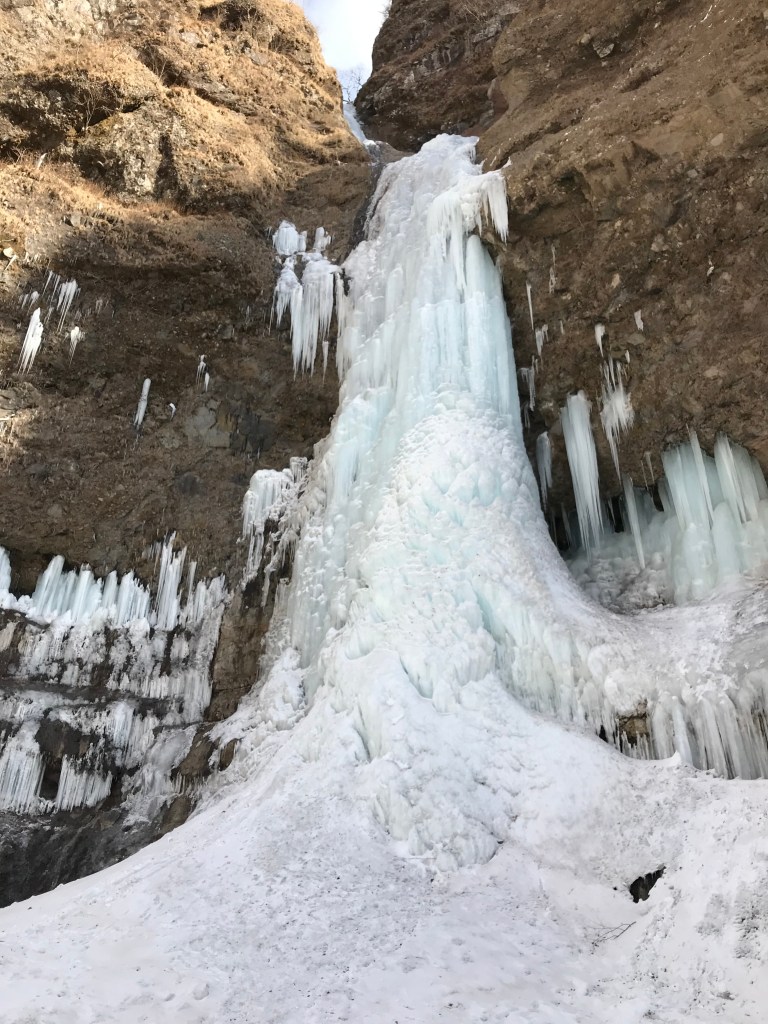 ★コース状況:ゲート手前で車を林道脇に止めて歩きます。林道は雪があると2WDでは厳しいです。林道は舗装されてて歩きやすいですが距離は長く飽きてきます。雲竜瀑の氷の氷結は甘かったのかな?日中は気温が上がり悪くなっていたと思います。(Twitter投稿によると2日後の2/4に雲竜瀑の氷は一部崩落しました。)雲竜瀑の釜は落石&落氷が多いので注意が必要です!帰路途中に登った右岸の氷はちょうどいい感じの硬さですが薄く微妙な感じ。