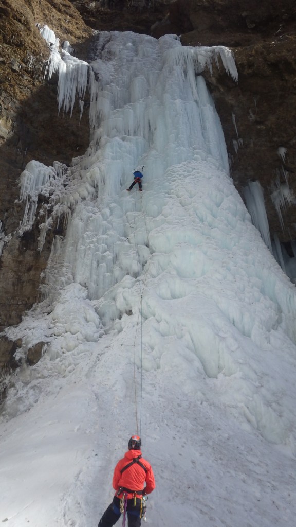 ・全く登らずに帰るのもなんなんで、帰路途中にトレースから少し外れたところにある右岸の氷を登りました。氷が薄かったですが楽しく登れました。