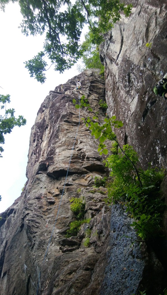 (山宮)朝のうちは岩が濡れていてテンションが上がらなく順番待ちでお茶を濁していたが、そこから気持ちを切り替えて登った。ワンダーランドは離陸できなかった。スラブルートは難しかった。ブラック&ブルーは3年前にトップロープでも3ピン目までしか登れなかったが今回はレッドポイントできた。
