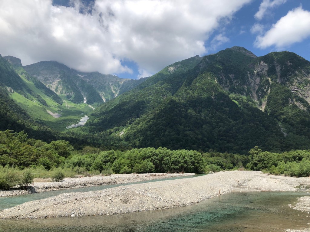 ★コース:上高地BT→小梨平キャンプ場(テント泊)→明神橋→ひょうたん池→(東稜を登攀)→明神岳主稜→明神岳2峰→明神岳3峰→明神岳4峰→明神岳5峰→(南西尾根を下山)→七番標識で一般登山道と合流→小梨平キャンプ場→上高地BT
