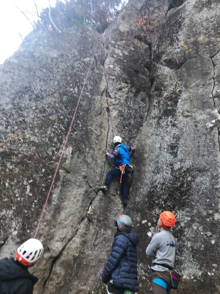 (酒井)トップロープで登れないルートを中心に登ってコツがつかめてきた。植木さんのアドバイスでフィンガージャムの時の脱力が上手くできるようになった。アドバイスのおかげで2日目の北京の秋が簡単に登れたので次回はリードでチャレンジしたい。