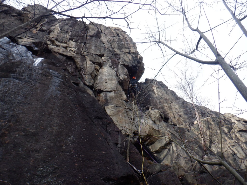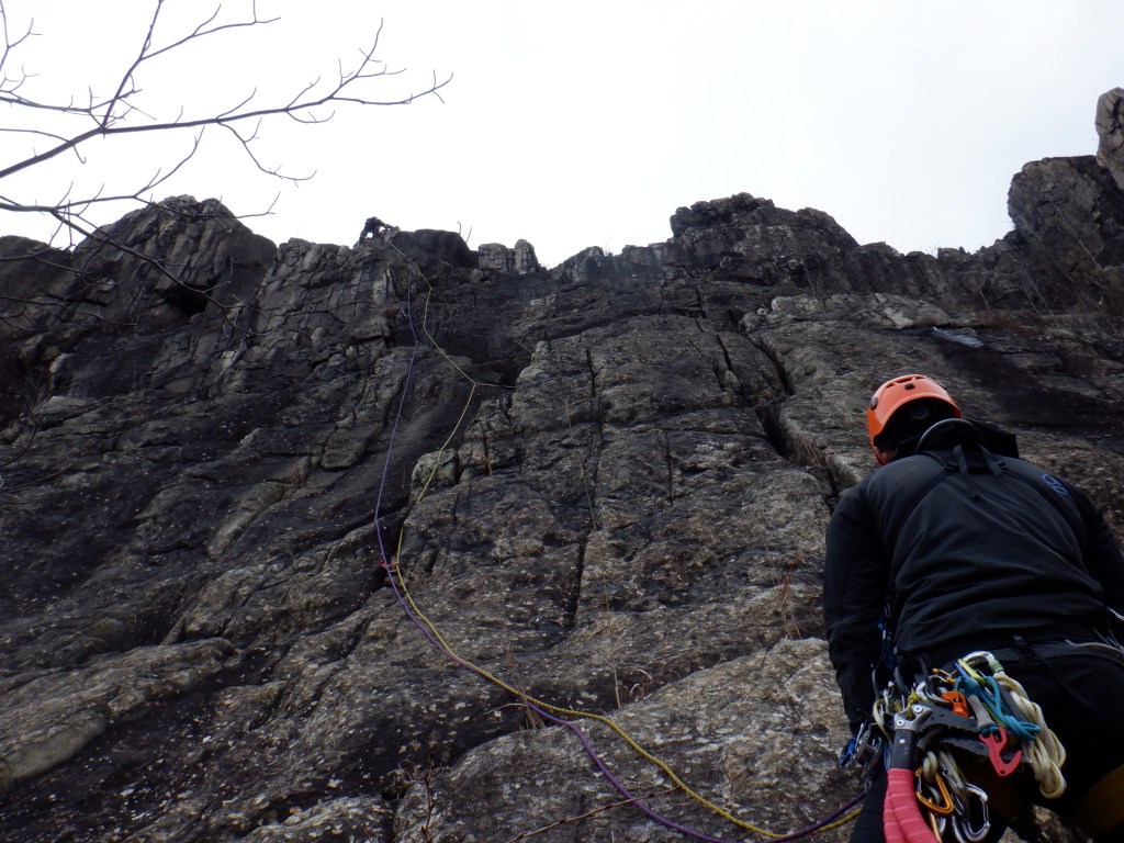 ・ 栃木のSさんからのお誘いで松木沢ジャンダルム中央壁左ルートへ行ってきました。ドライメインの登でしたが攀、今回はオールフォローで楽しく登らせてもらいましたが、ドライのリードはもっと練習が必要だと感じました。また、今回は岩に雪が付いてなかったので容易に登れましたが雪が付いたら難しいと思います!!
