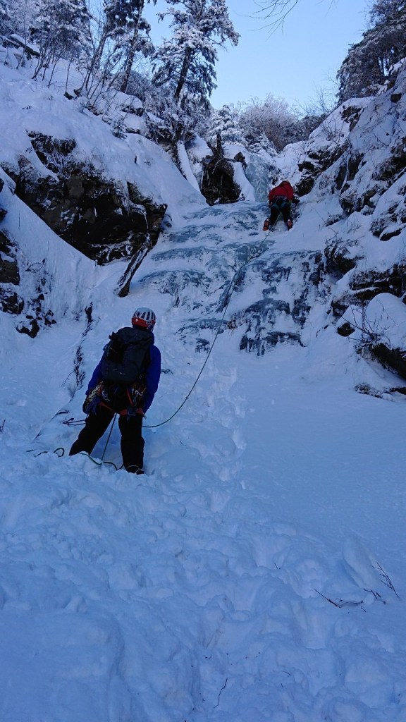 (進藤ま)今回も北海道へ行ったメンバーで夏沢鉱泉に泊まりicegalleryへアイスクライミングをしに行って来ました♪今回私はG3とG4の2ピッチ目をリード出来たのでそれだけで十分に満足でした(^-^)vその他のフォロー及びトップロープでは北海道で教えて頂いた登り方を考えながら登攀しましたが段々と違う感じになっていき…(ToT)