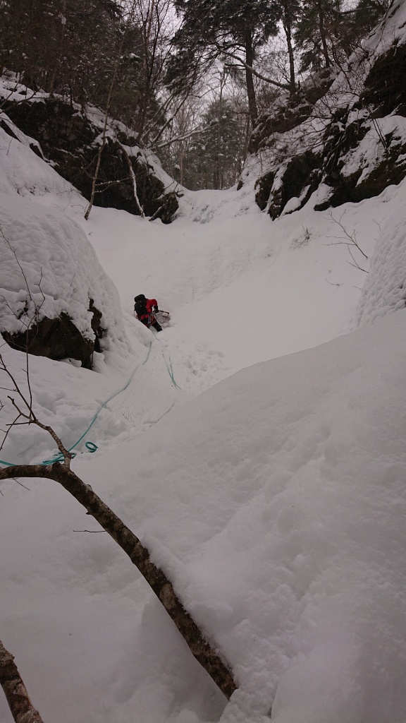 (進藤み)降雪でアプローチが意外と長くなり大変でした。氷のスケールはいまいちで物足りない感じもしますが良い練習ゲレンデだと思います。今回は春日ルンゼ上部で積雪がかなりありアソシエイツルンゼから上に抜けるのはラッセルがあるかもと判断してアソシエイツルンゼを登るのは止めて春日ルンゼF1でリード練習に変更しました。