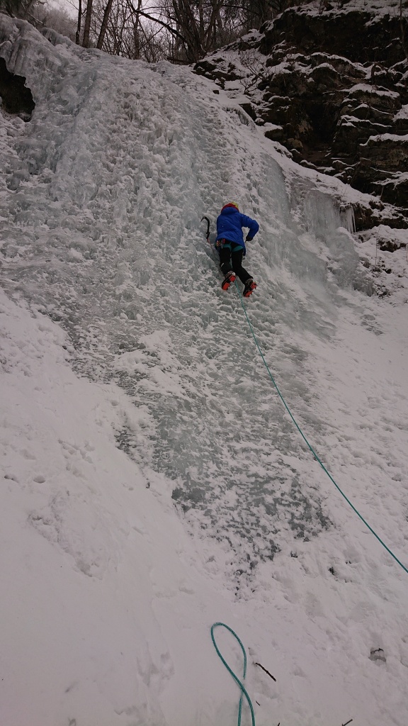 数日前の大寒波の影響でか積雪が多くアプローチも長くなり…登れる所も少なかったですが、無理だと思ったF1をリードで登れたので大大大満足でした(^-^)v