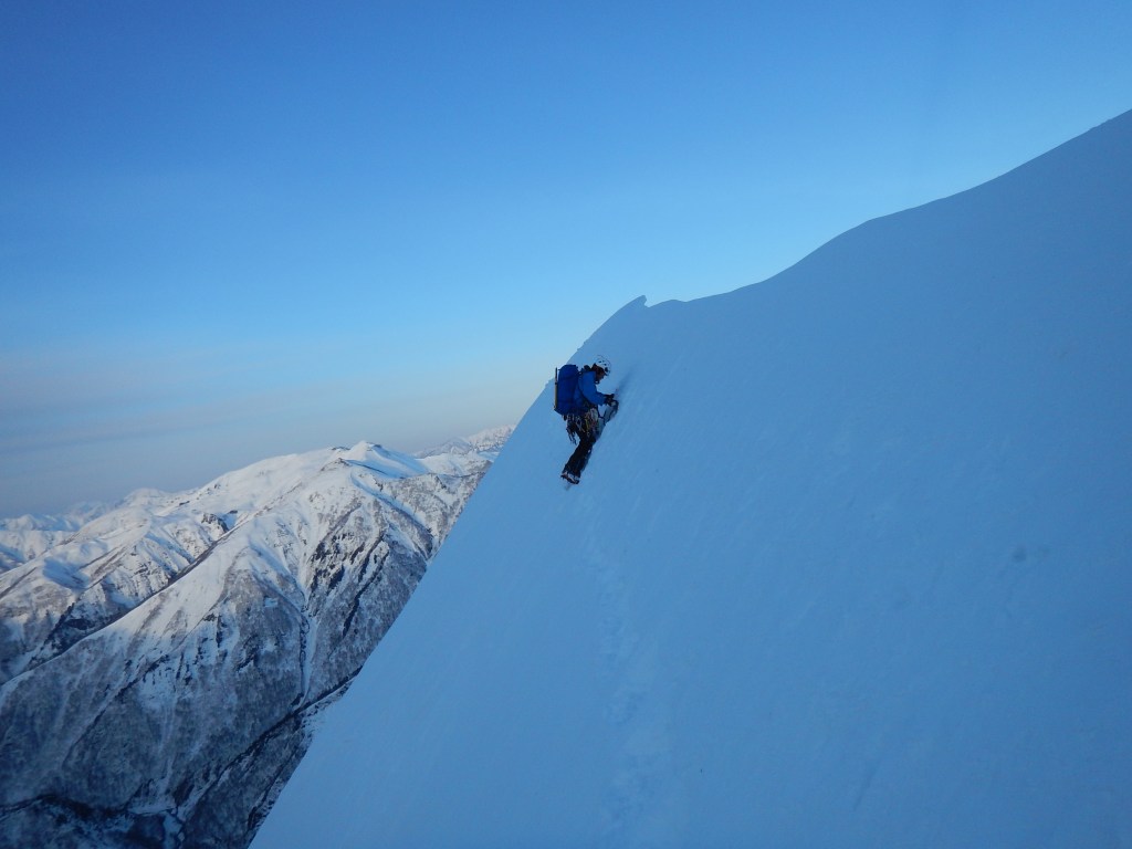 ・雪壁上部に出てくる岩のあるミックスは慎重に突破。その後の雪のリッジも雪が悪く悪かった。(フリーで抜けましたが、この付近だけはロープを出した方が安心安全だと思います。)