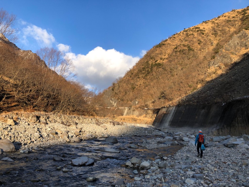 ・渡渉あり(山宮は靴を脱いで渡渉せずに飛び石でクリア。松本は着地した石の上の氷で滑って右足水没・・)