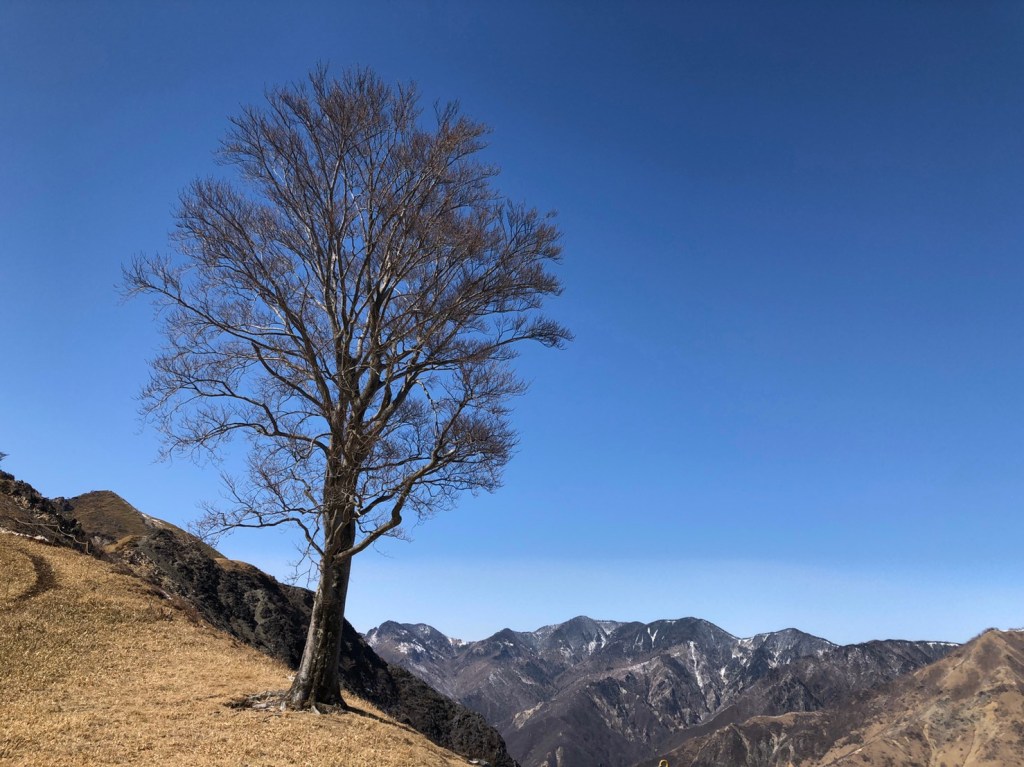 (松本)渡渉が核心でした。尾根までの歩きと稜線上の歩きは風が強く寒かった。孤高のブナが見れて良かった。
